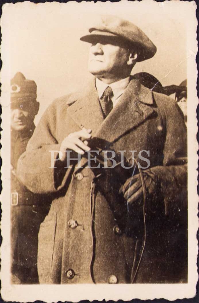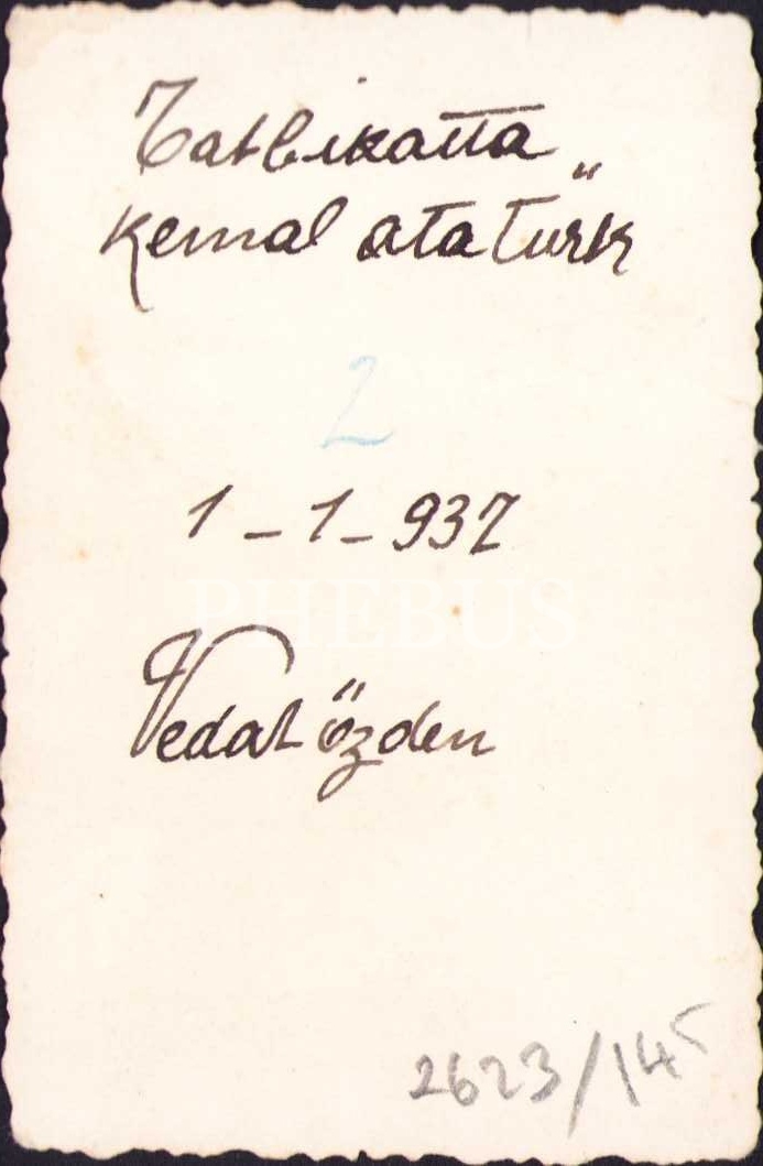 Mustafa Kemal Atatürk tatbikatta elinde dürbünüyle, 1932, 6x9 cm, kırık haliyle