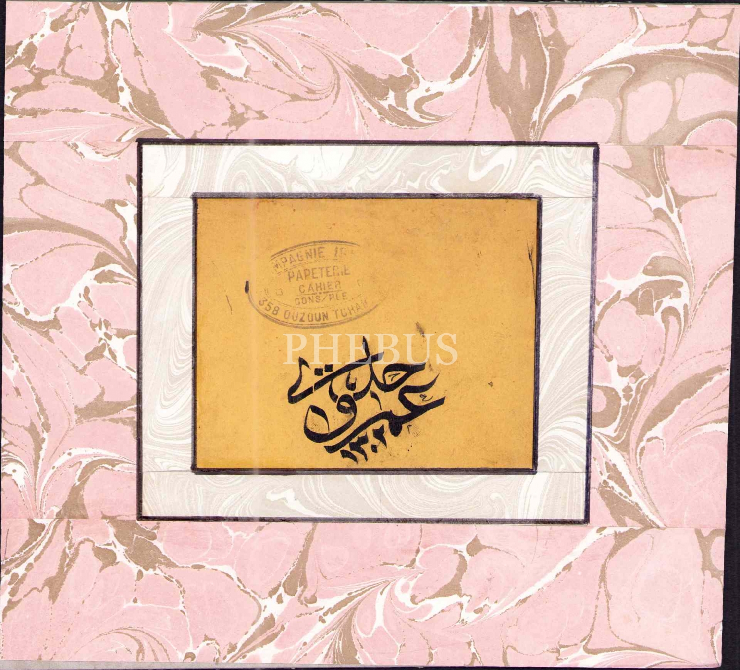 Hattat imzası, "Ömer Vahdetî, 1302 ", ebru pervazlı, yazı:10x14 cm