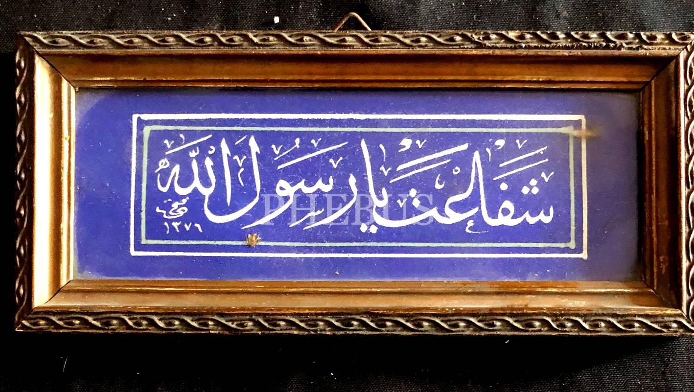 Fethi ketebeli ve 1376 tarihli sülüs dua: "Şefaat Yâ Rasulallah", 12x25 cm