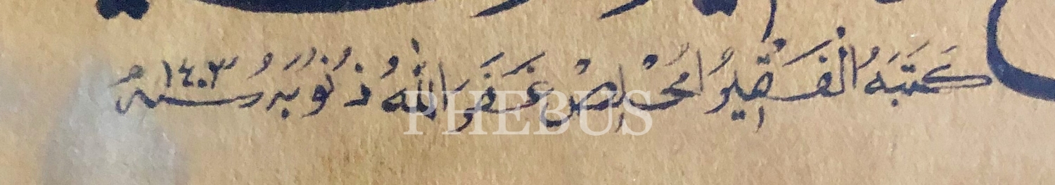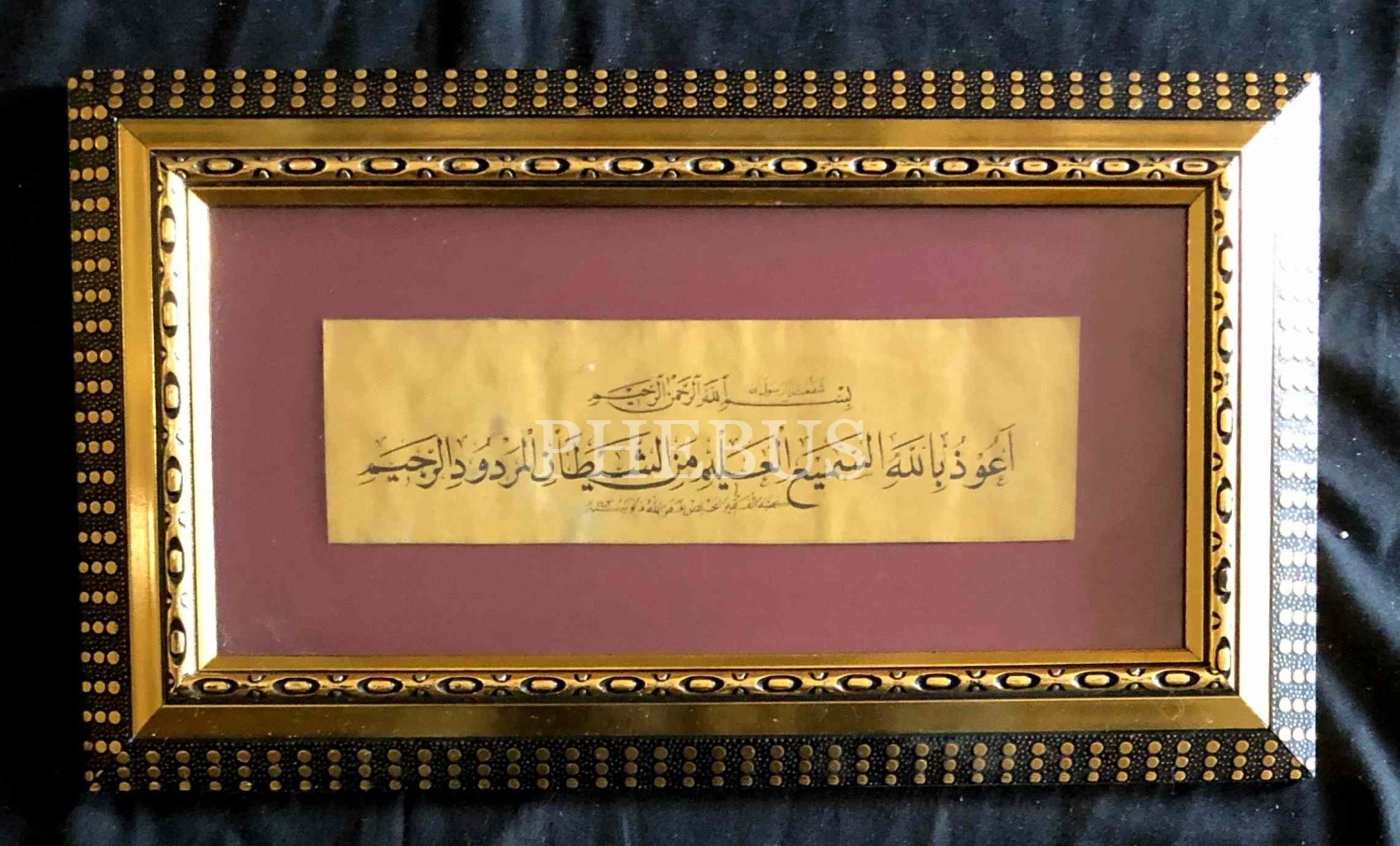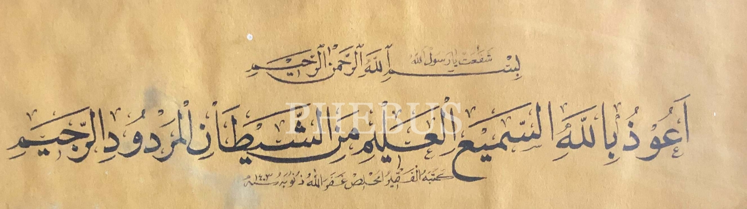 Muhlis ketebeli ve 1403 tarihli celî nesih Euzü Besmele, yazı: 9x28 cm