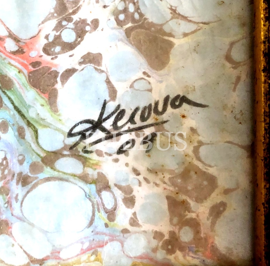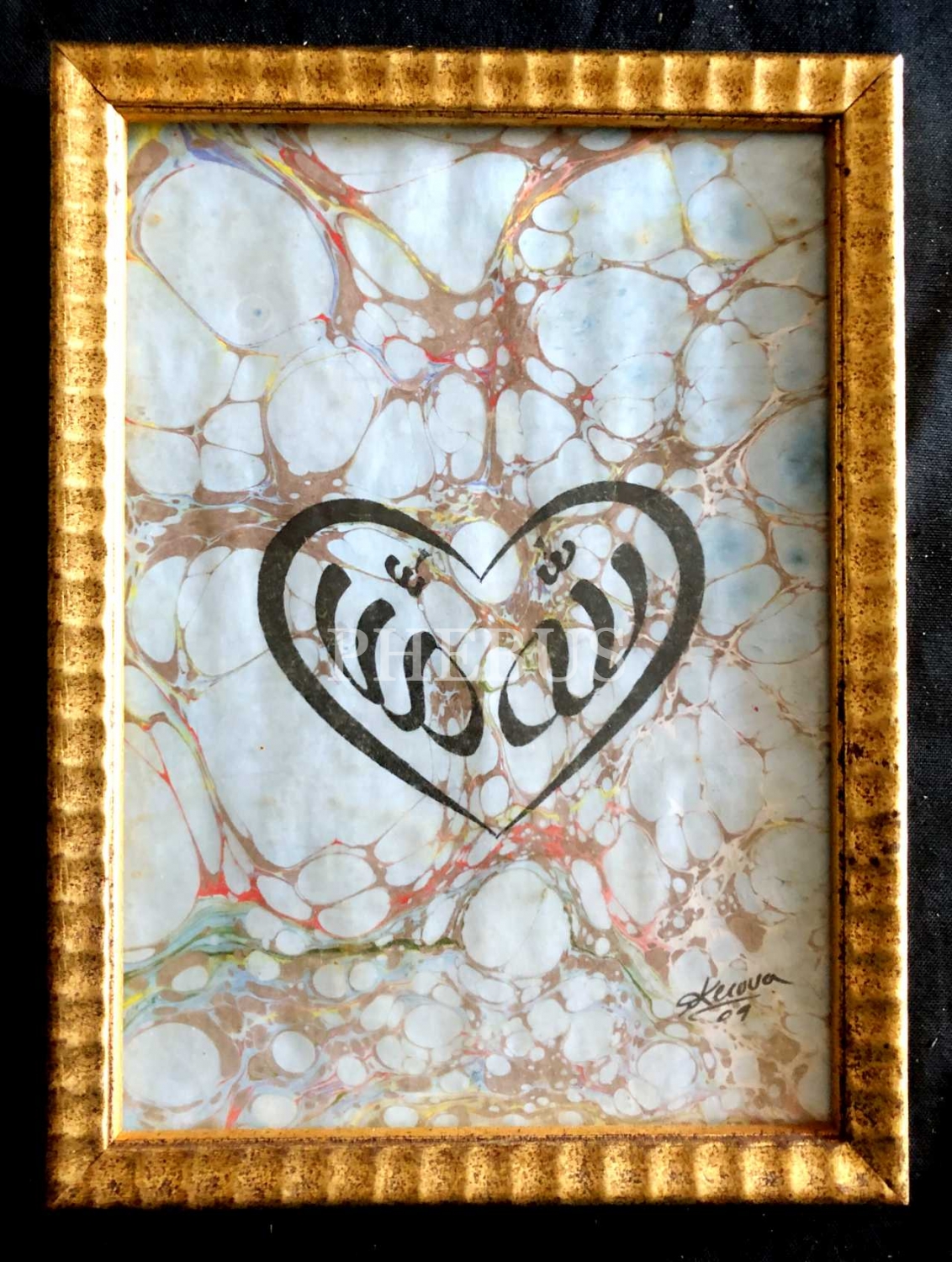 Kerova imzalı ebru üzerine müsenna Allah lafzı, 23x32 cm