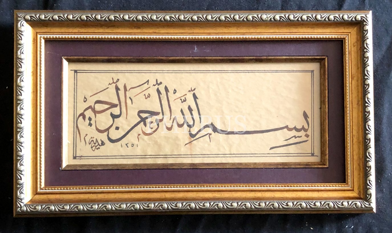 Hediye ketebeli ve 1351 tarihli sülüs besmele, 12x27 cm