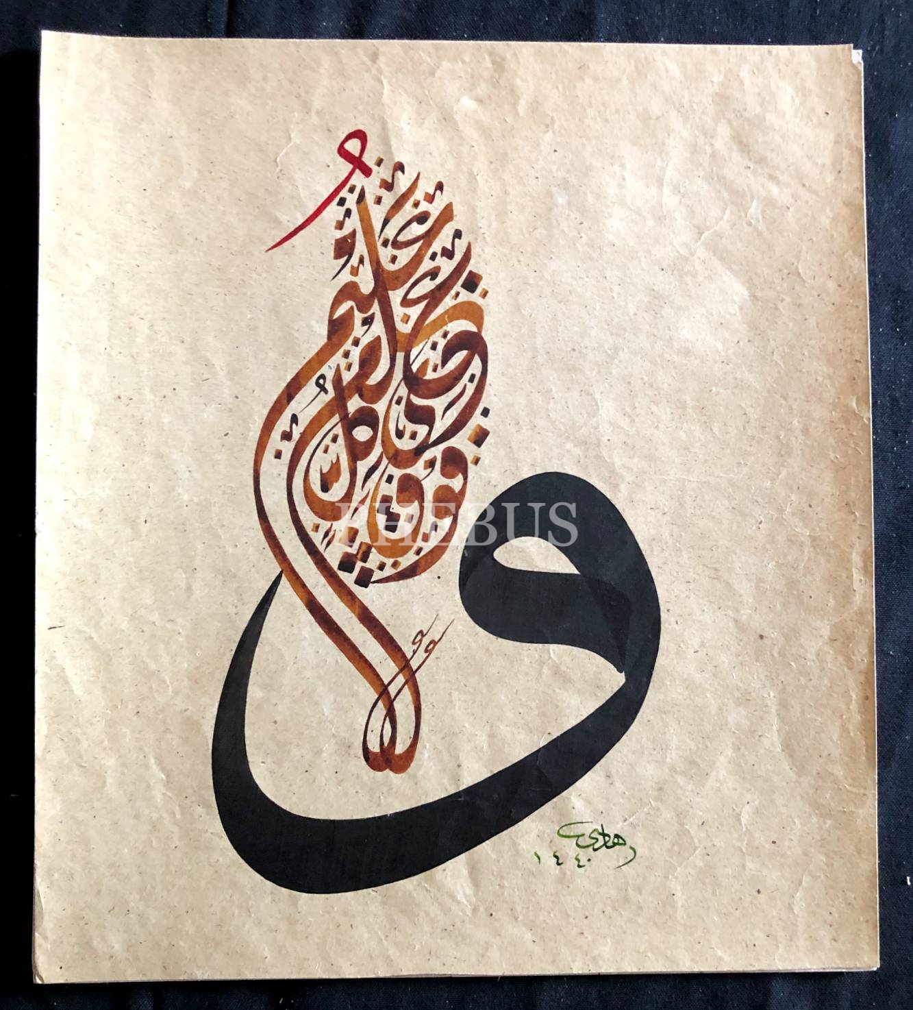 Hâdi Kerkükî ketebeli ve 144o tarihli celî sülüs ve divânî ayet (Yusuf/76), 34x38 cm