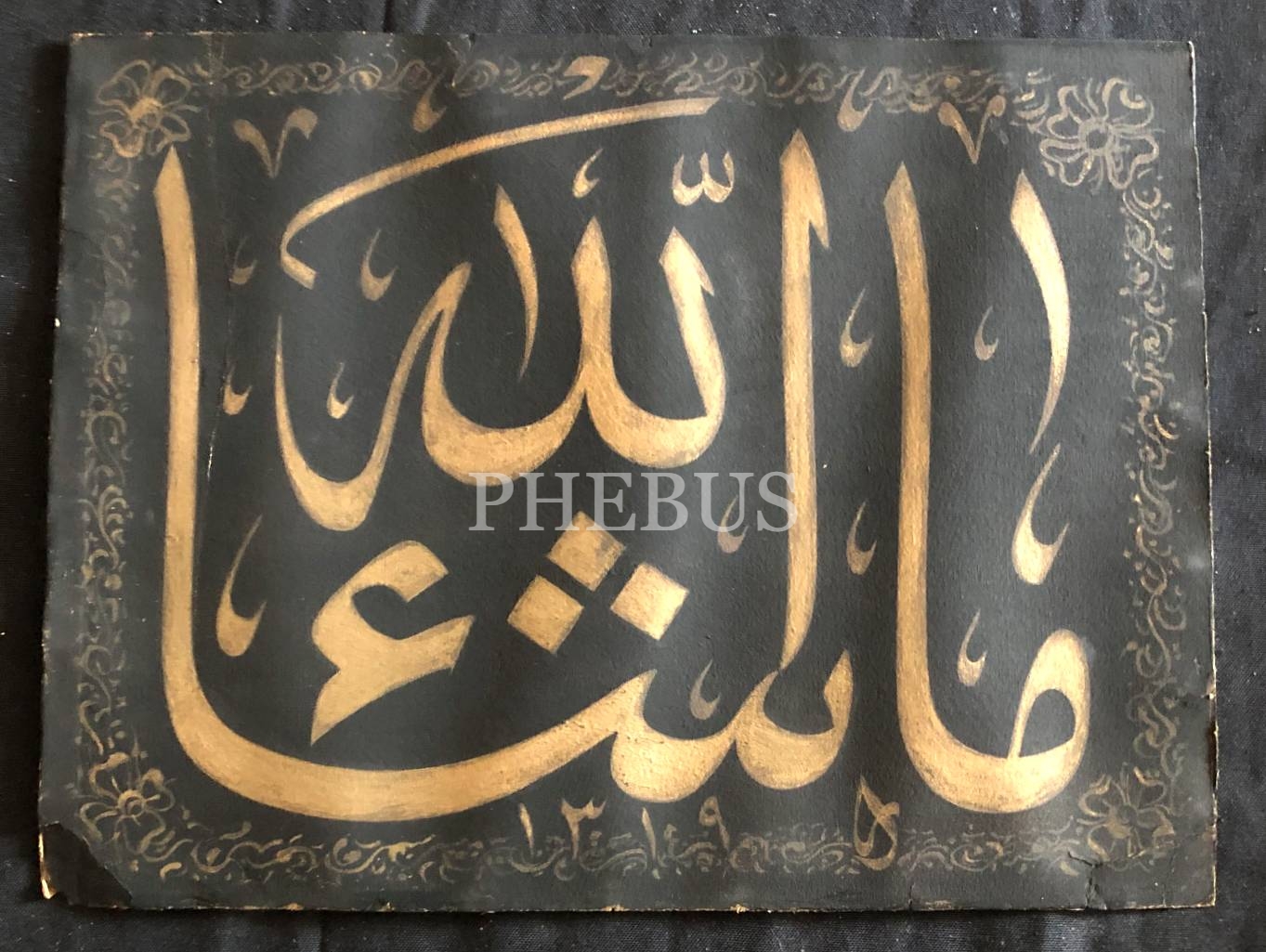 1319 tarihli zerendût celî sülüs "Maşaallah", 32x42 cm
