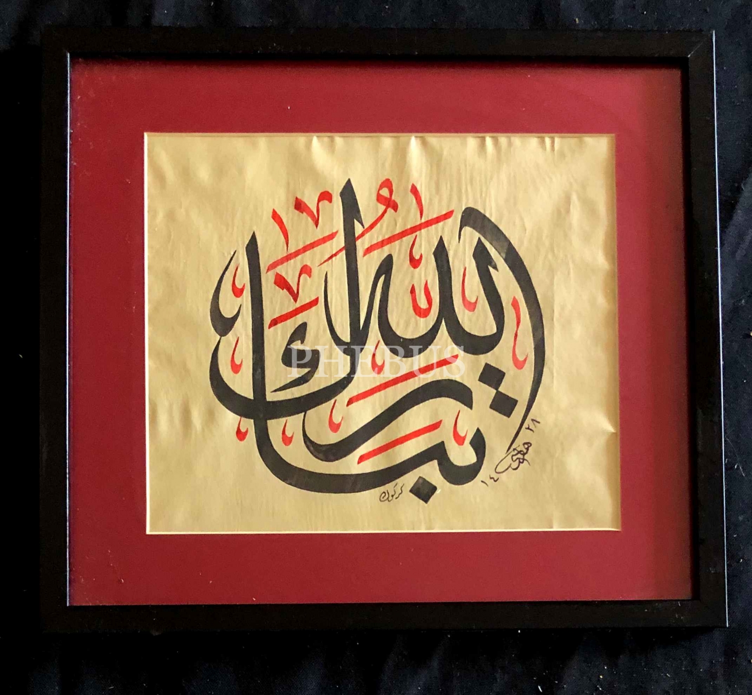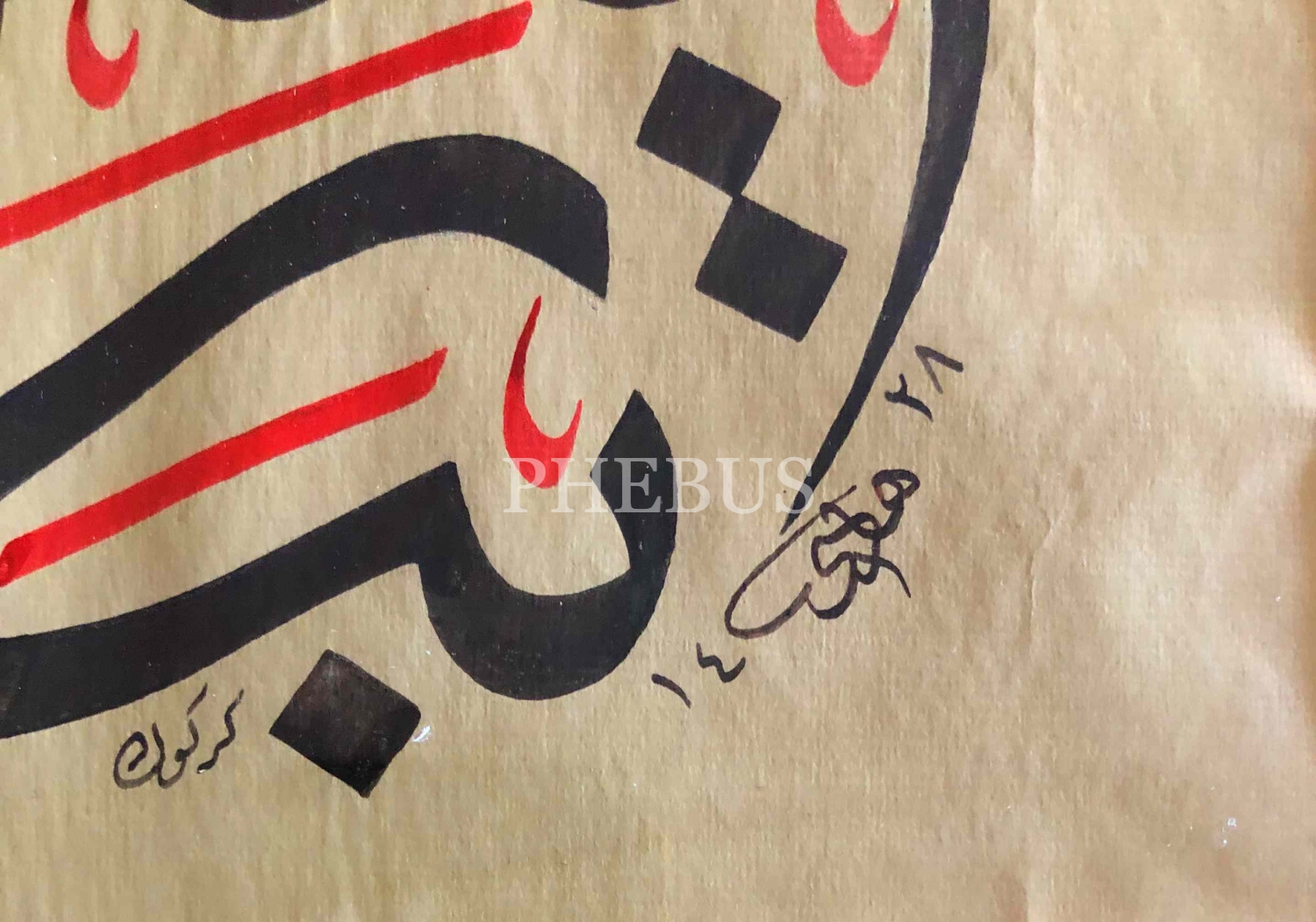 Hâdî Kerküki ketebeli, 1428 tarihli celi sülüs " Tebârekallah", yazı:21x25 cm