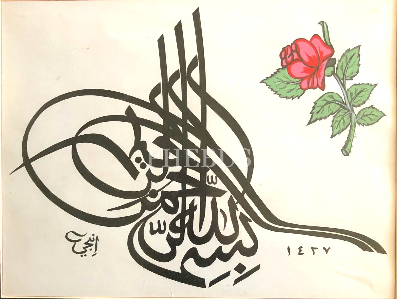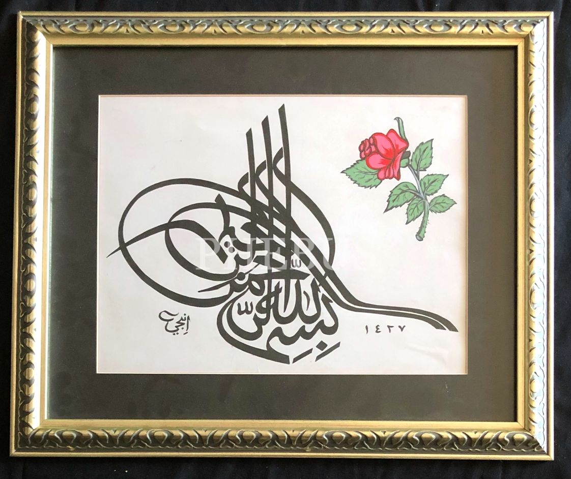 İnci ketebeli tuğra formunda Besmele, 1427 tarihli, yazı:28x38 cm