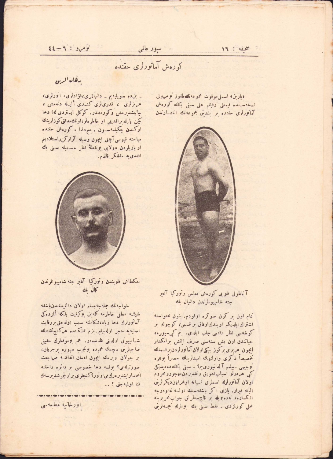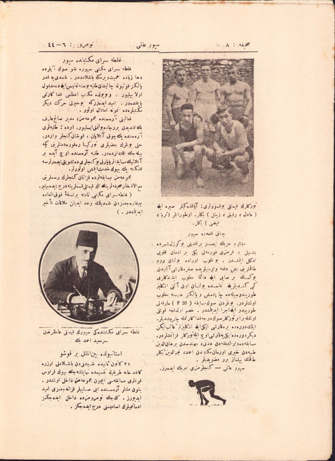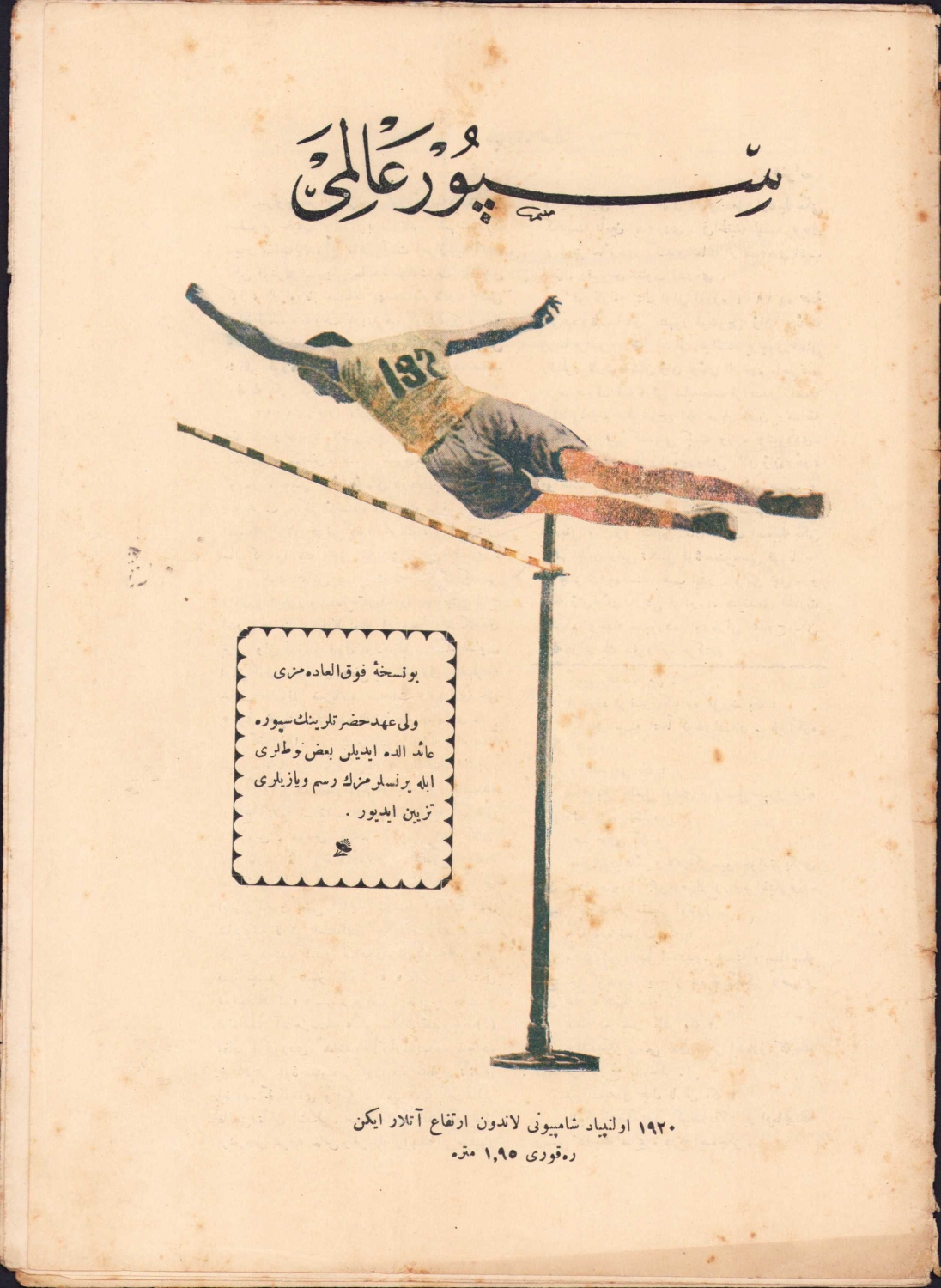 Osmanlı Spor Alemi Mecmuası, Sahibi Sait Tevfik, başyazarı Burhanettin, 1921 tarihli, kapak resmi 1920 olimpiyat şampiyonu
