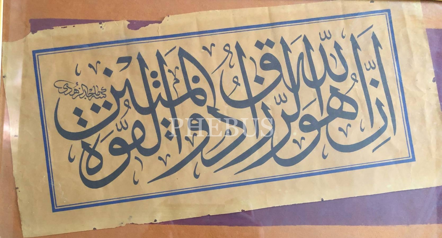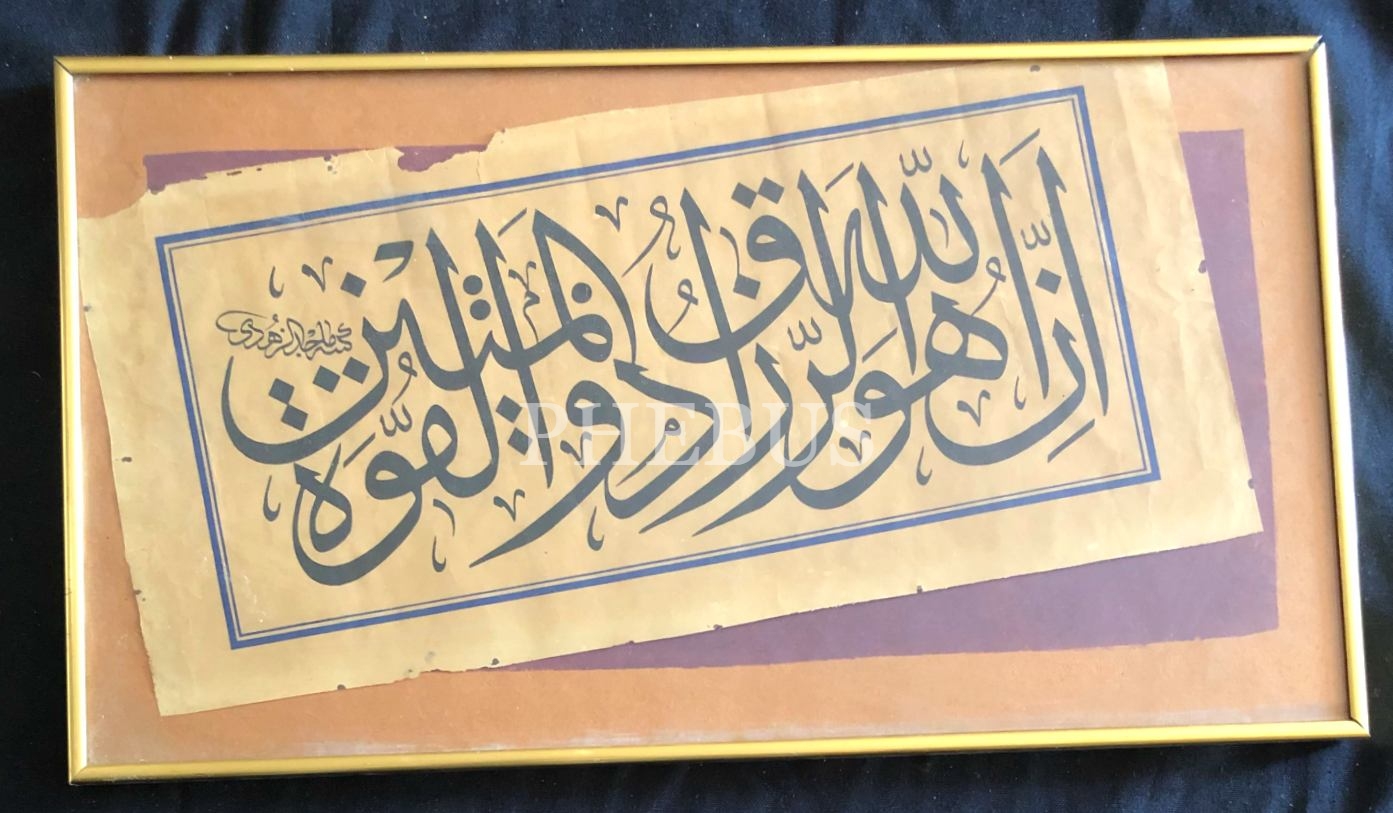 Macid Zühdi(Macit Ayral) ketebeli baskı celi sülüs ayet (Zariyat/58), yazı: 16x35 cm