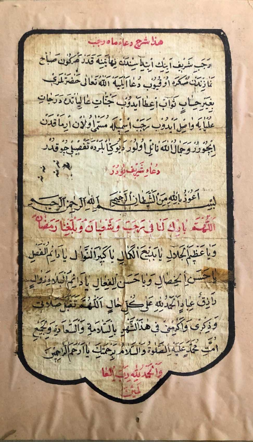 Nesih hatla Receb ayı duası ve şerhi, 12x22 cm