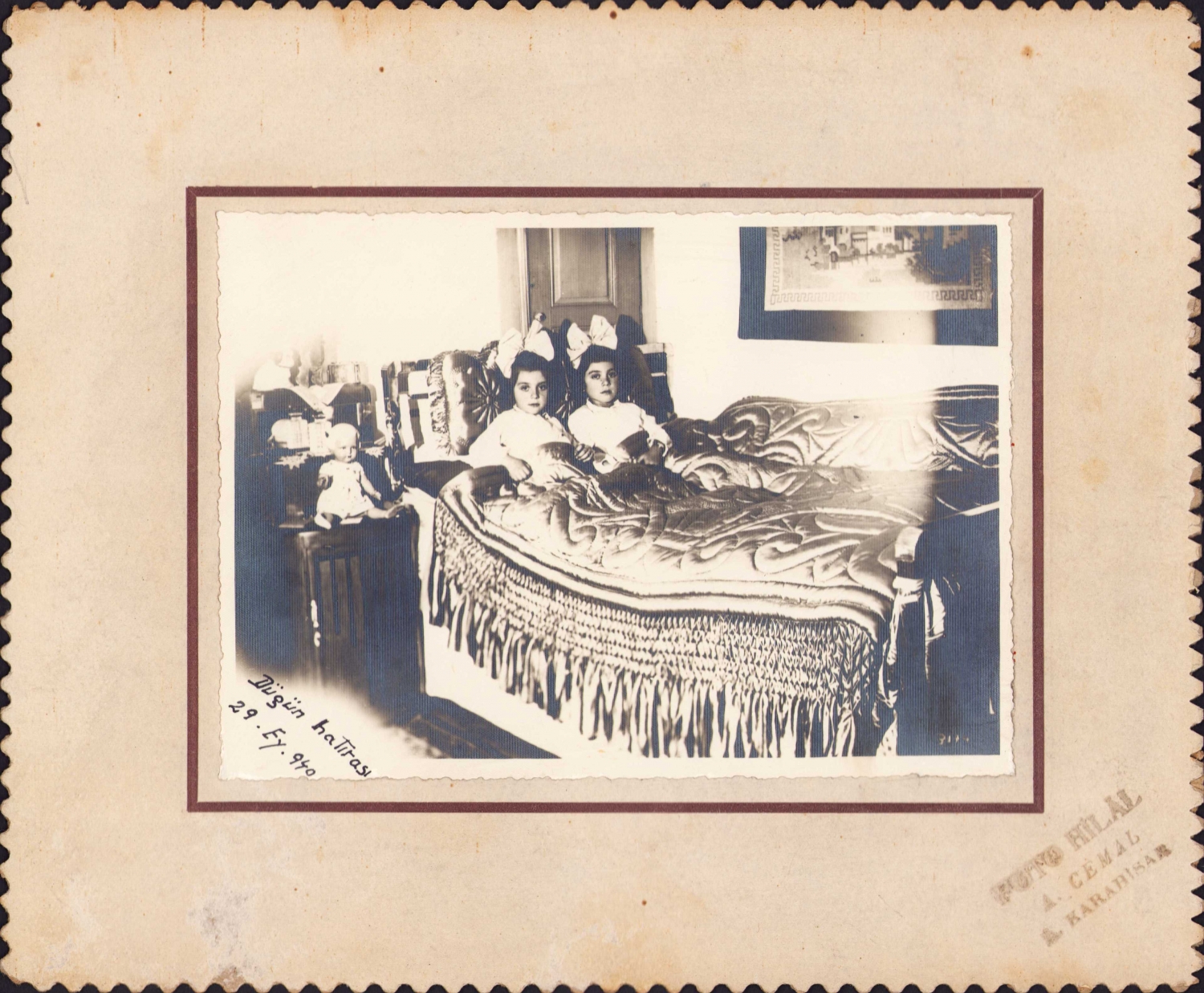 1940 Afyonkarahisar stüdyo damgalı,oyuncaklı ikiz kız çocukları