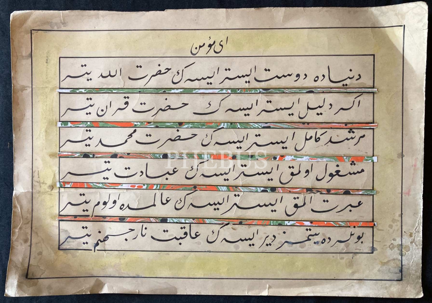 El yazısı ile mümine nasihat: "Dünyada dost ister isen Hazret-i Allah yeter...", yazı: 35x50 cm