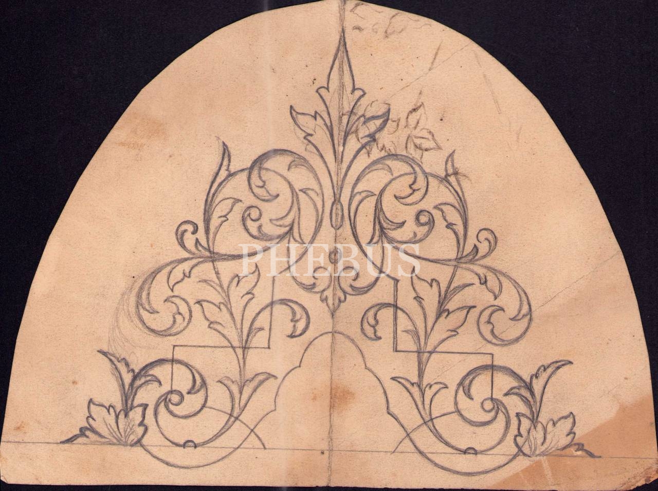 Barok tarzı tezhip eskizleri, üç parça, 20x27, 20x28, 17x21 cm ebatlarında