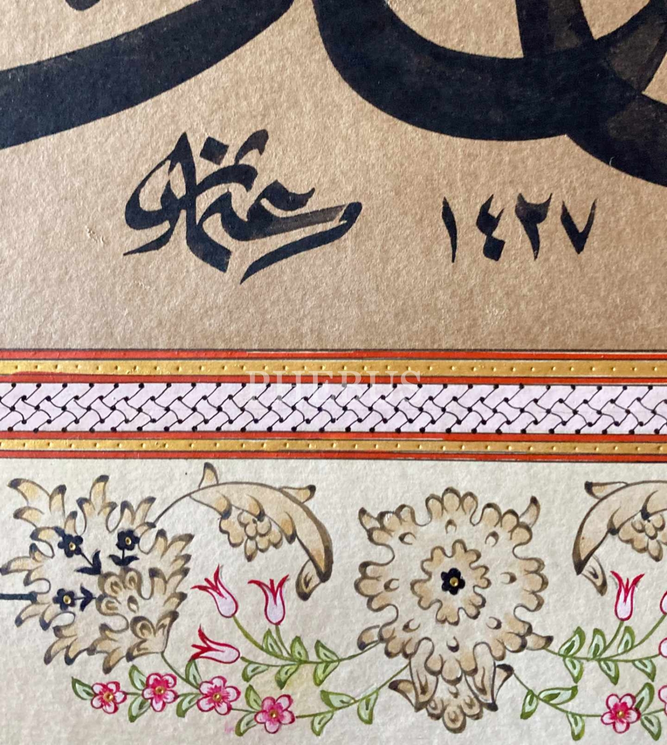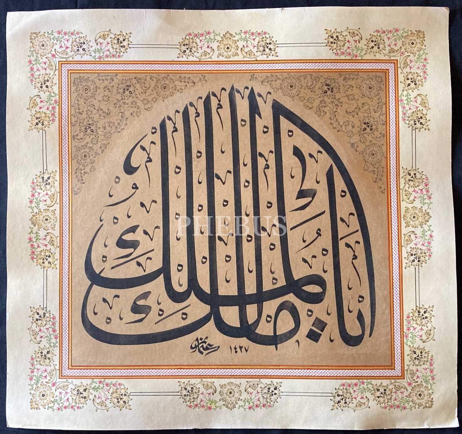Osman(Yayla) ketebeli ve 1427 tarihli celî sülüs "Yâ Mâlike'l-Mülk", tezhip: Aylin Cemilgil, 67x72 cm