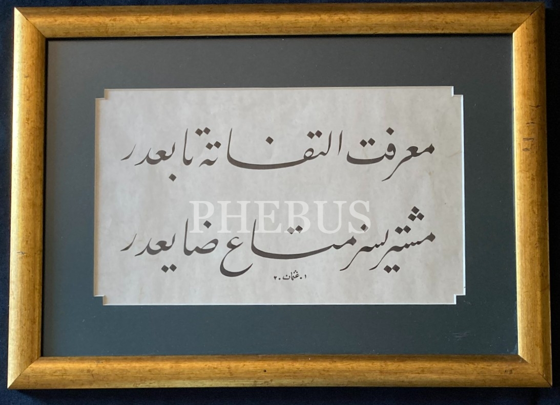 Osman(Yayla) ketebeli ve 2001 tarihli ta´lik yazı: "Marifet iltifâta tâ´bidir, Müşterisiz metâ zâyîdir", yazı: 16x27 cm