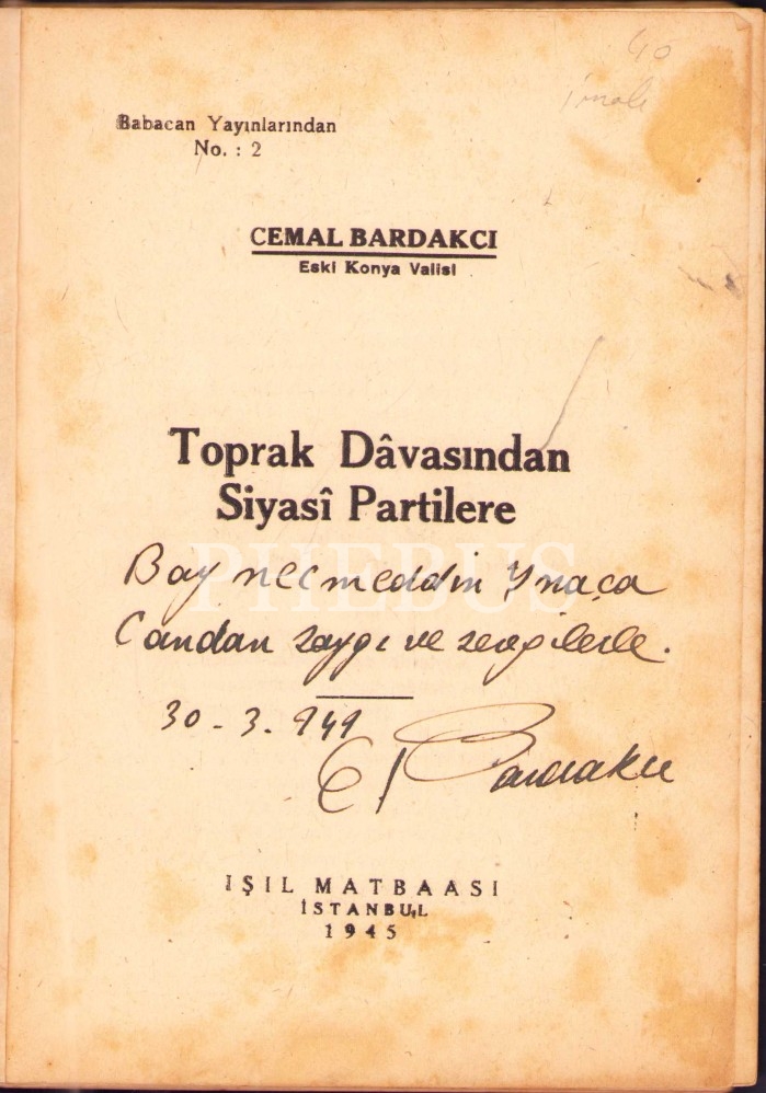 BİZDE SİYASİ PARTİLER, Cemal Bardakçı, 1946, Işıl Basımevi, 114 sayfa, 14 X 20 cm… İthaflı ve imzalı…