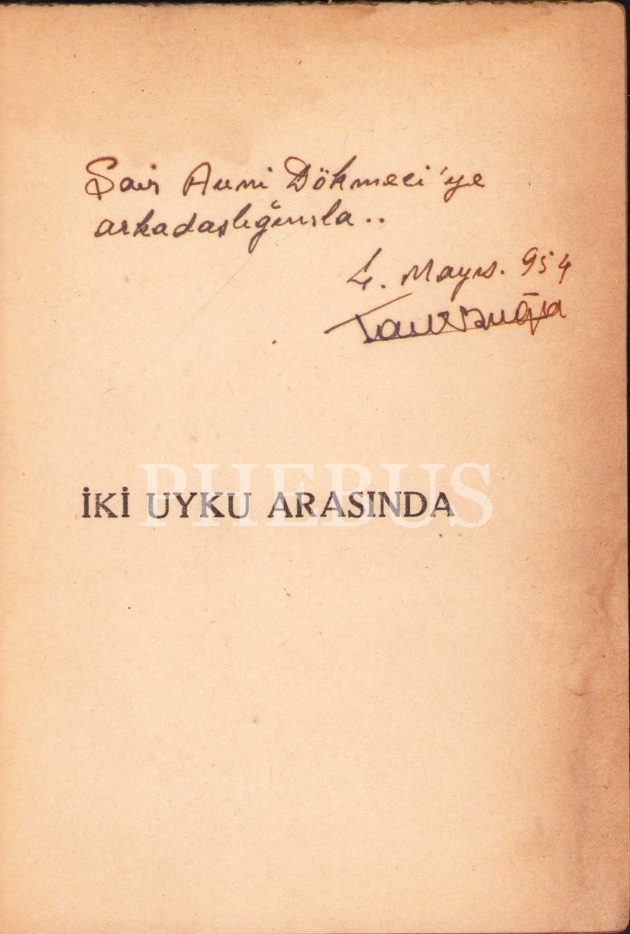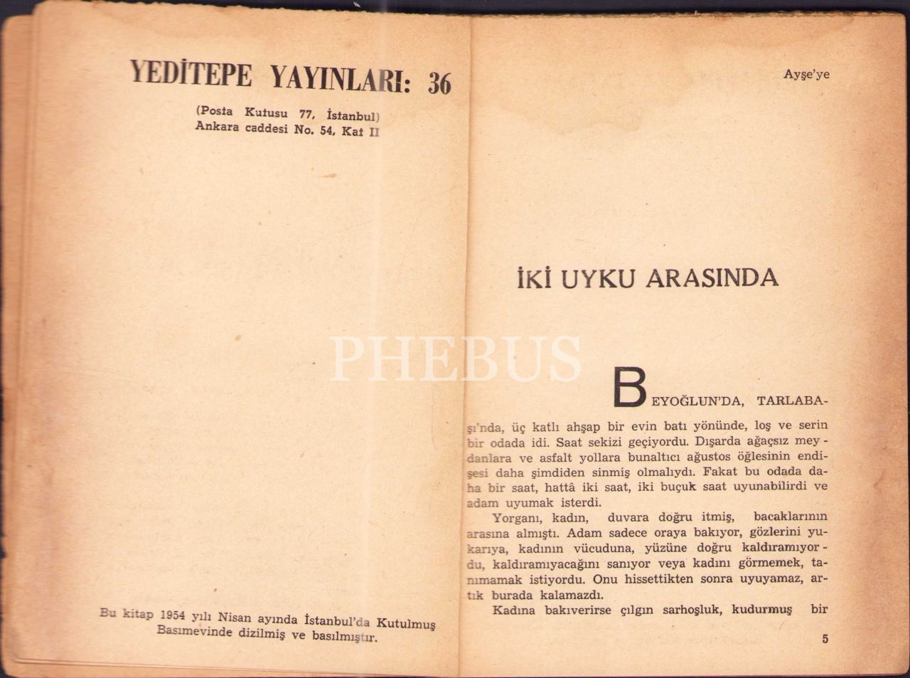 İKİ UYKU ARASINDA, Tarık Buğra, 1954, Yeditepe yayınları, 88 sayfa, 12 X 16,5 cm… İthaflı ve imzalı…