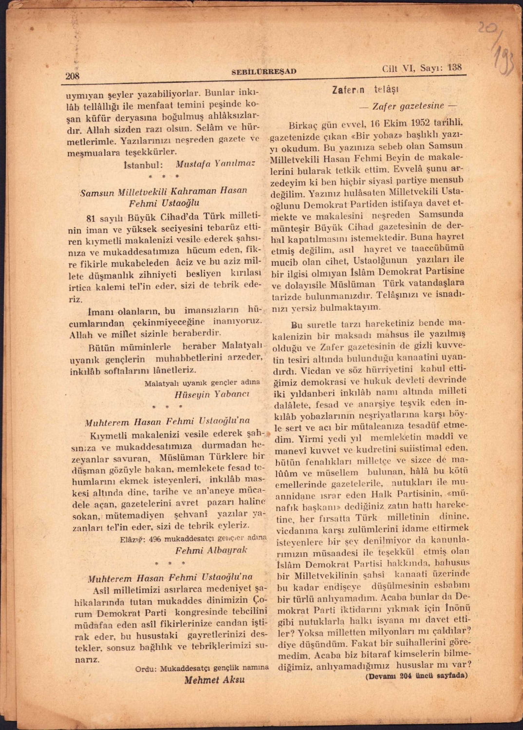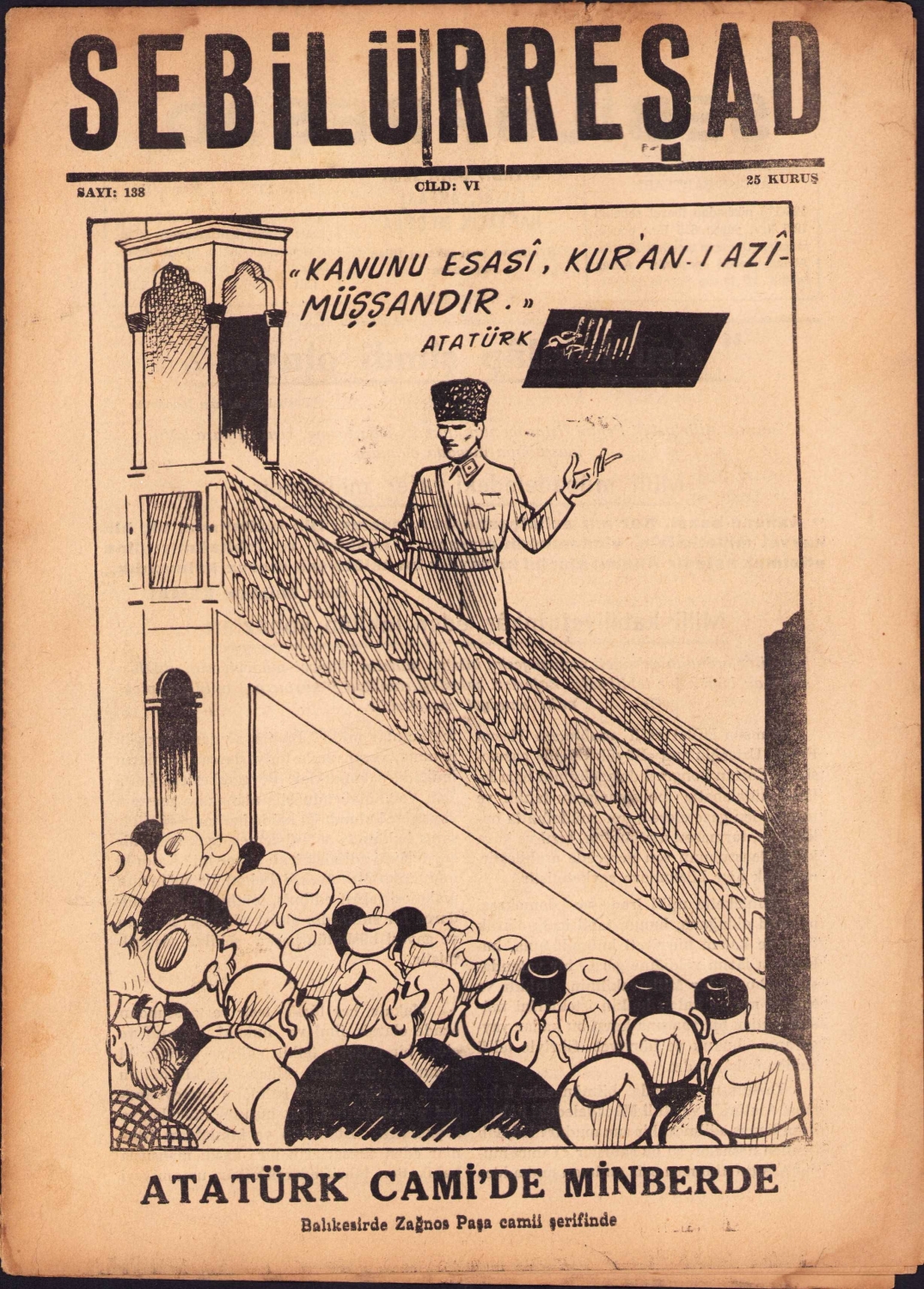 Sebilürreşad, kapak Atatürk Balıkesir Zağnos Paşa Cami'de Minberde