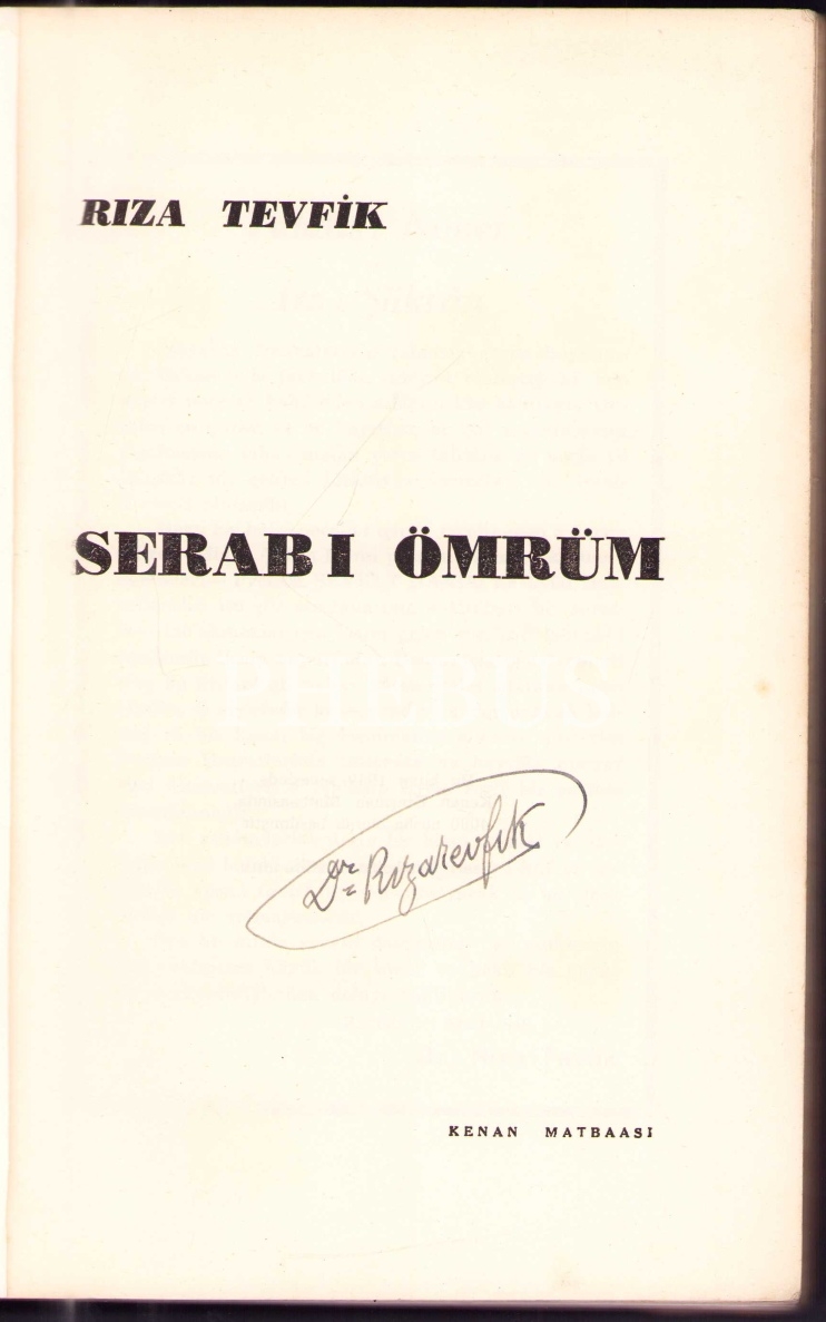 SERAB-I ÖMRÜM, Rıza Tevfik, 1949, Kenan Matbaası, 366 sayfa, 15 X 23 cm… İmzalı…