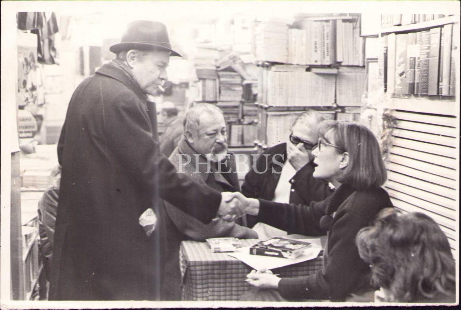 Çağdaş Türk romanının en önemli simlerinden Adalet Ağaoğlu (1929 - 2020), imza gününde eleştirmen Fethi Naci (1927 - 2008), şair ve denemeci Salah Birsel (1919 - 1999) ile birlikte…