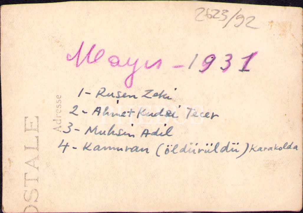 AHMET KUTSİ TECER´İN SİVAS LİSESİNDE ÖĞRETMEN OLDUĞU YILLARDA ÖĞRENCİ VE ÖĞRETMENLERLE BİRLİKTE ÇEKİLMİŞ, MAYIS 1931 TARİHLİ FOTOĞRAFI, 8,5 X 6 cm…