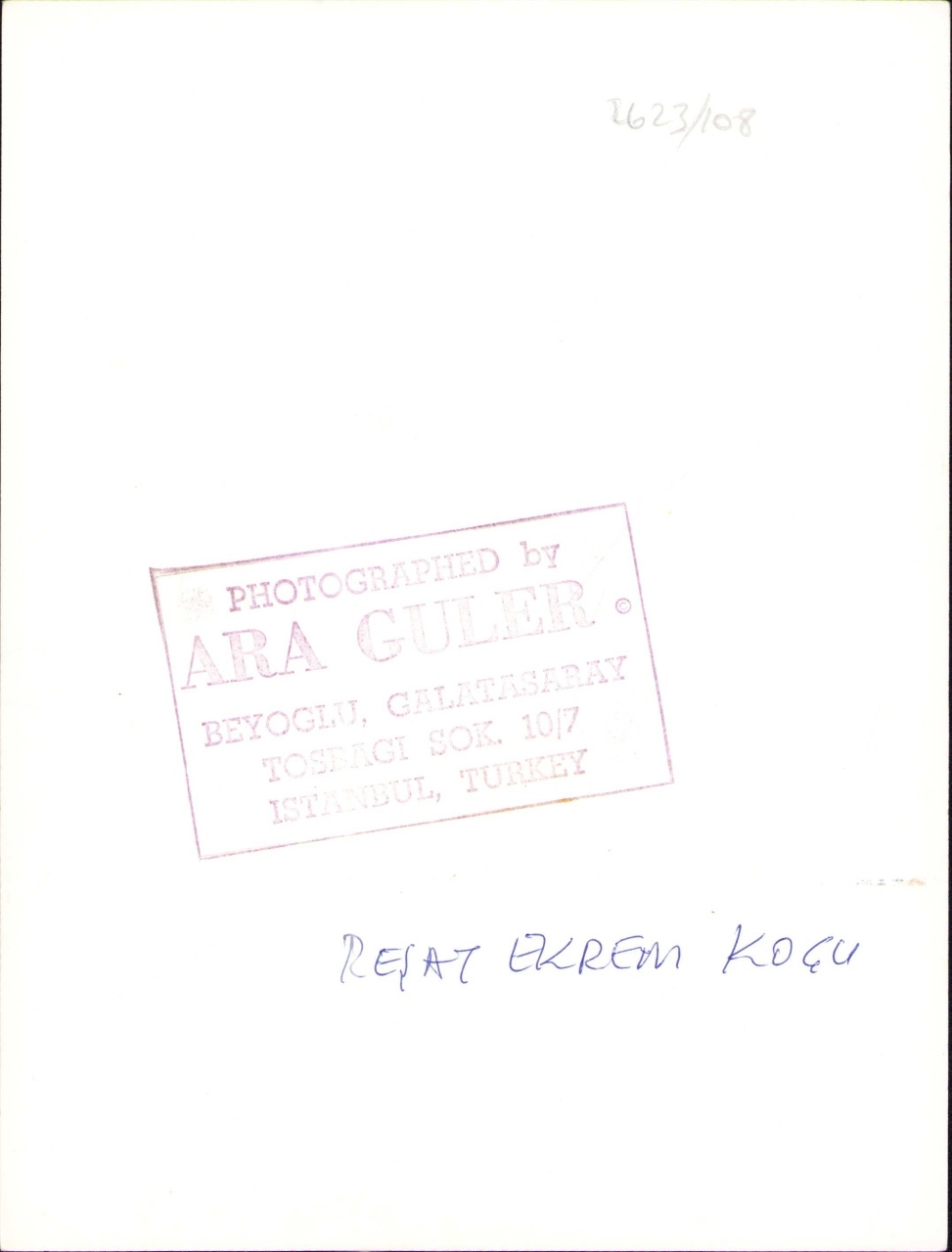 Başta, tamamlanamamış olmasına karşın, İstanbul Ansiklopedisi gelmek üzere, tarih ve edebiyat hazinemize birbirinden güzel ve ilginç, onlarca eser armağan eden Reşat Ekrem Koçu´nun (1905 - 1975), dünyaca ünlü fotoğraf sanatçımız Ara Güler (1928 - 2018) tarafından çekilmiş fotoğrafı... Fotoğrafı arkasında, muhtemelen Ara Güler tarafından yazılmış "Reşat Ekrem Koçu" yazısı ve "Photographed by Ara Güler" kaşesi bulunuyor.