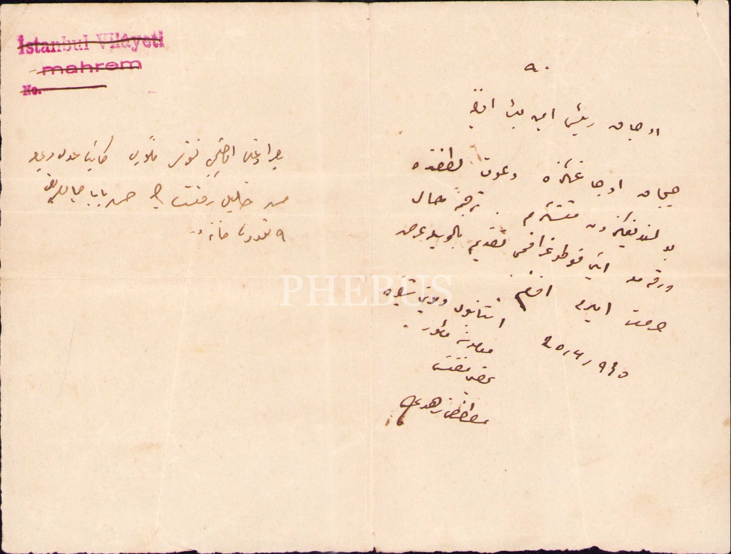 İSTANBUL VİLAYETİ MAHRAM ANTEPLİ İMZALI OSMANLICA EFEMERA, 16 X 21 cm