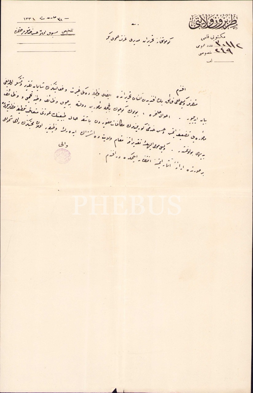 Trabzon Vilayeti antetli ve 1331 tarihli evrak, 23x36 cm