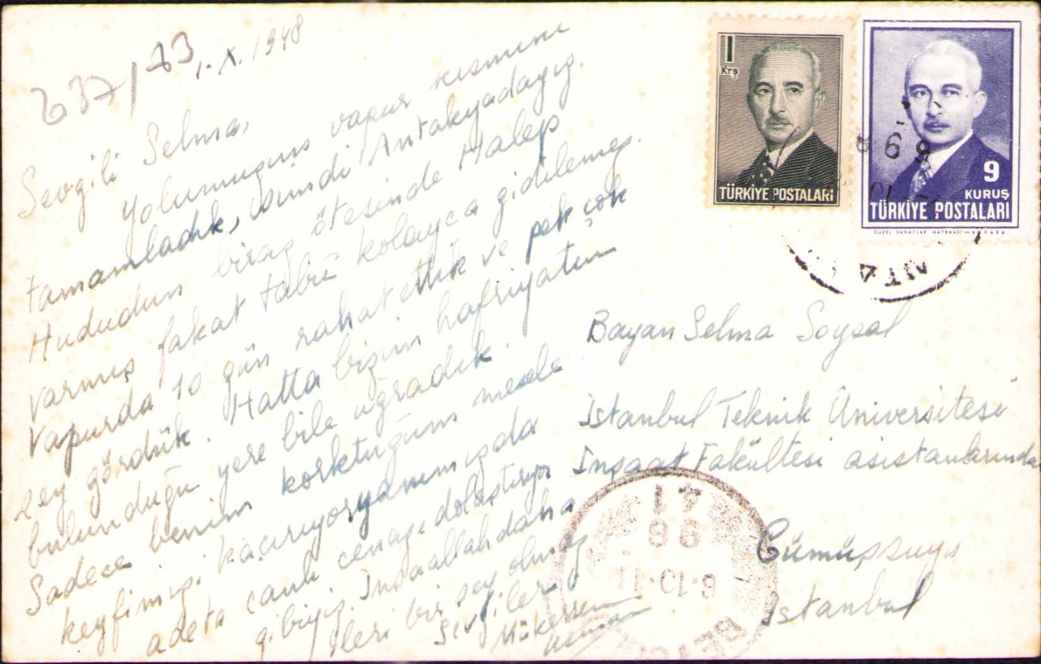 Şehir tarihi: Mersin Kışla caddesi, arkasında 1948 tarihli mektupla postadan geçmiş kart