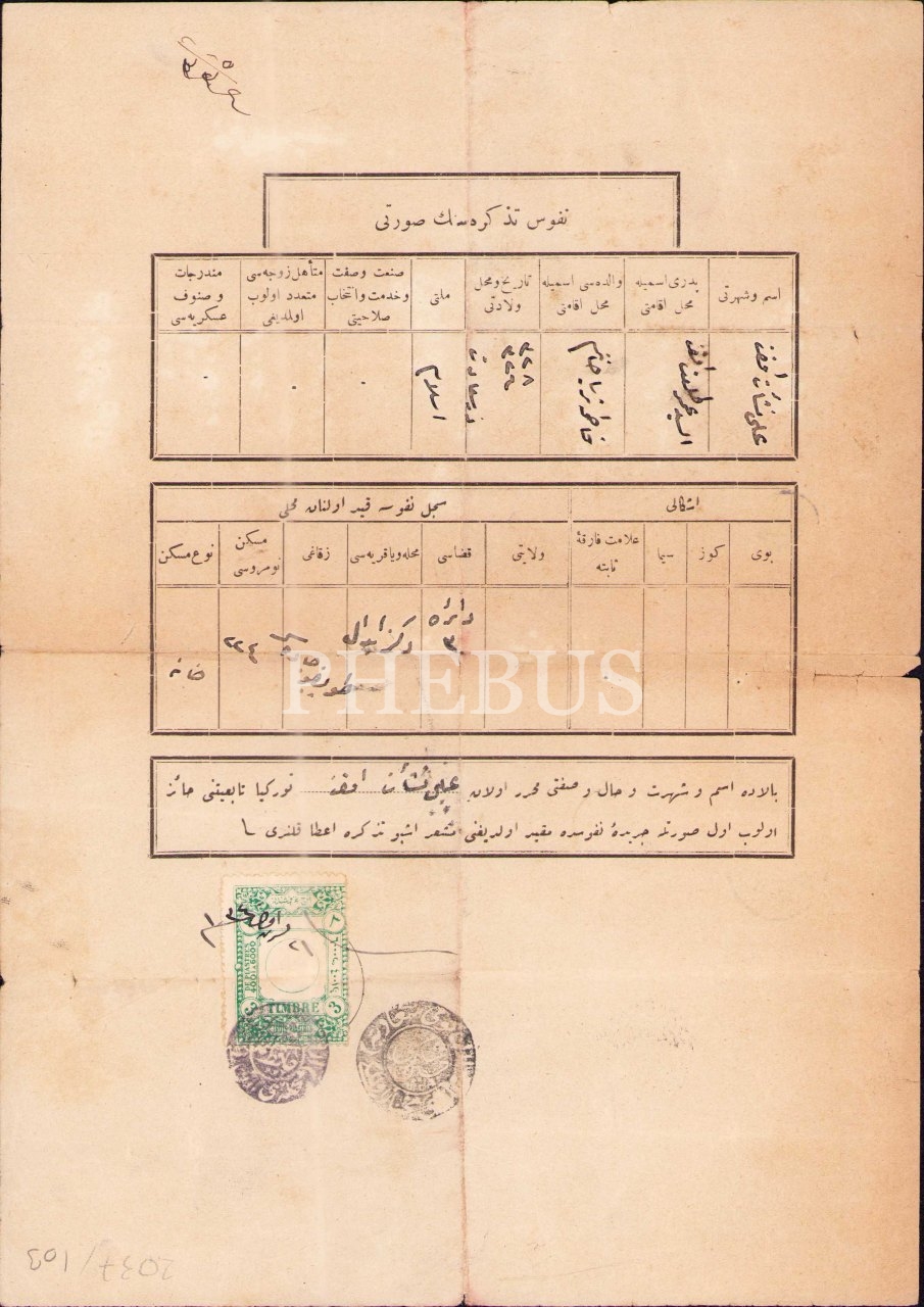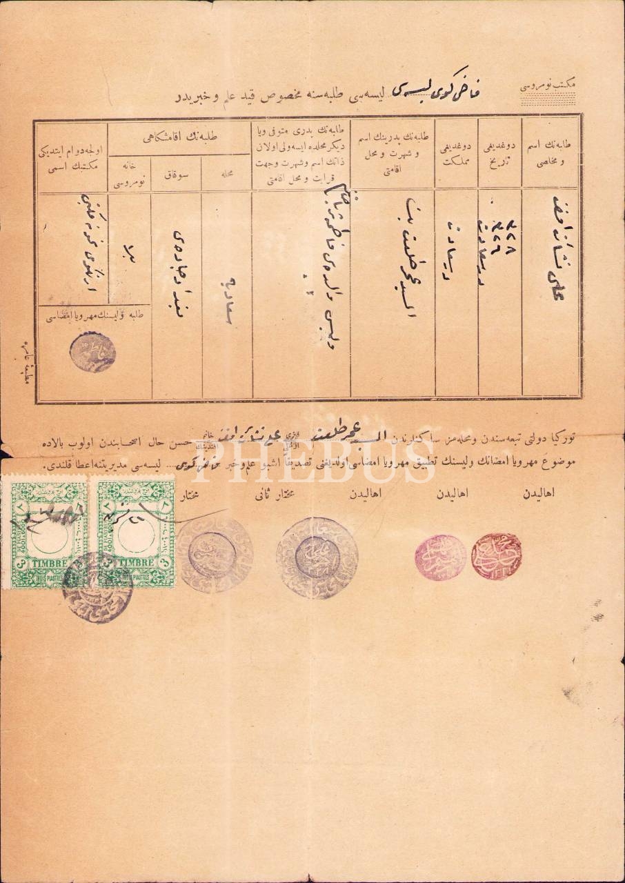 Eğitim tarihi: Kadıköy Lisesi´ne kayıt belgesi, 1340 tarihli, 20x28 cm, kenarları yırtık haliyle