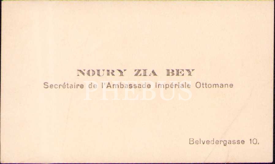 Osmanlı Büyükelçiliği Sekreteri Nuri Ziya Bey´e ait kartvizit, arkasında 1916 tarihli mektup mevcut