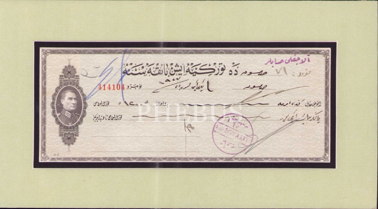 Türkiye İş Bankası makbuzu, Samsun 1927, paspartu: 15x28 cm