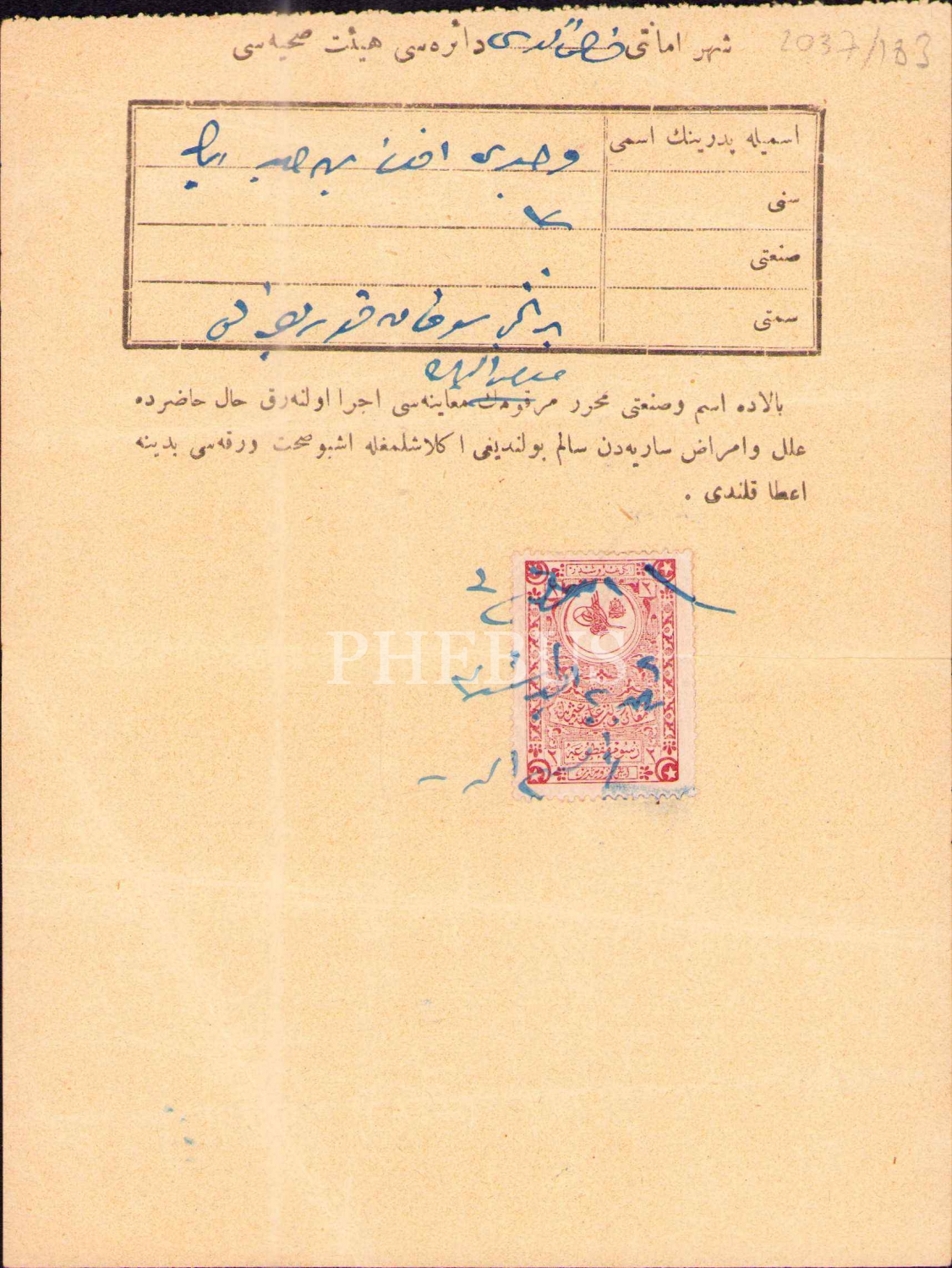 Tıp tarihi: 1301 tarihli sağlık raporu, Kadıköy/İstanbul, 14x19 cm