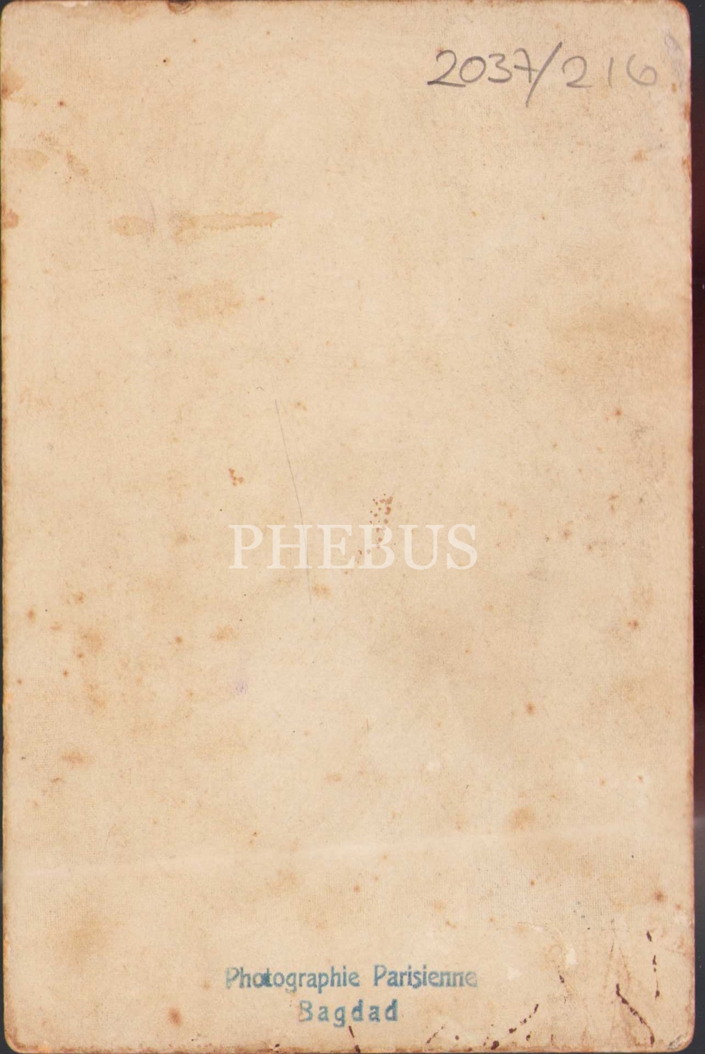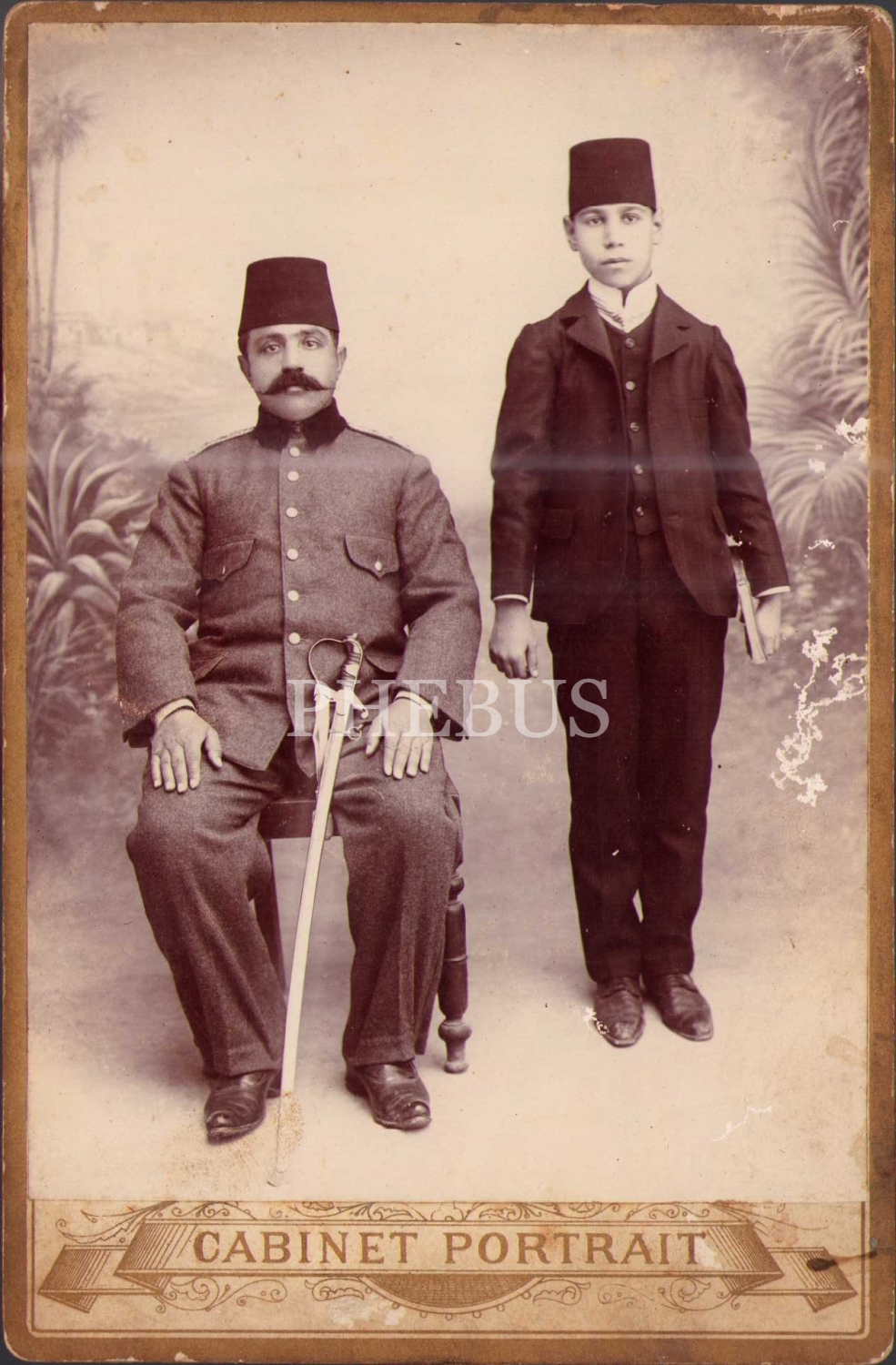 Kılıcıyla poz veren Osmanlı subayı ile kitabıyla poz veren genç Osmanlı, Parisienne Fotoğrafhanesi-Bağdat, 11x16 cm