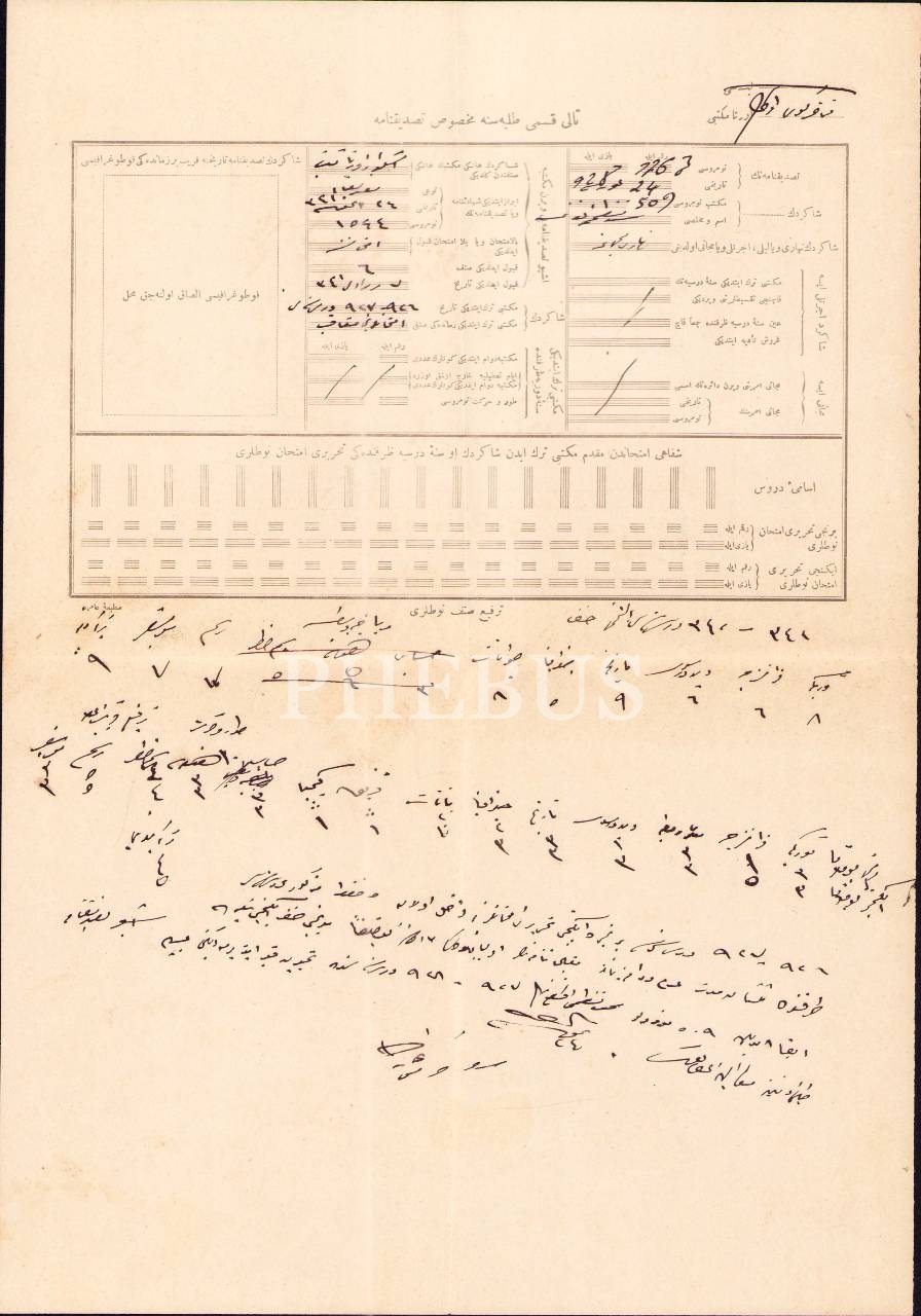 Eğitim tarihi: Kadıköy Erkek Ortaokulu tasdiknamesi, 1927 tarihli, 28x41 cm