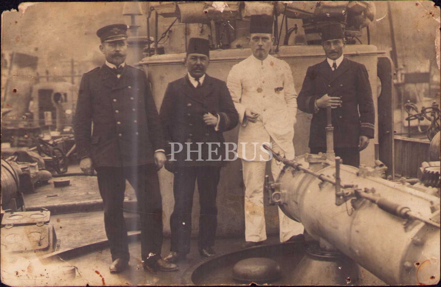 Gemi çalışanlarının hatıra fotoğrafı, alt köşesi kırık haliyle
