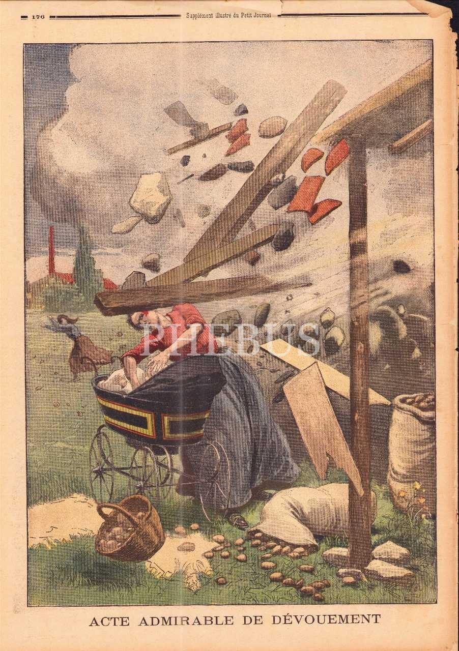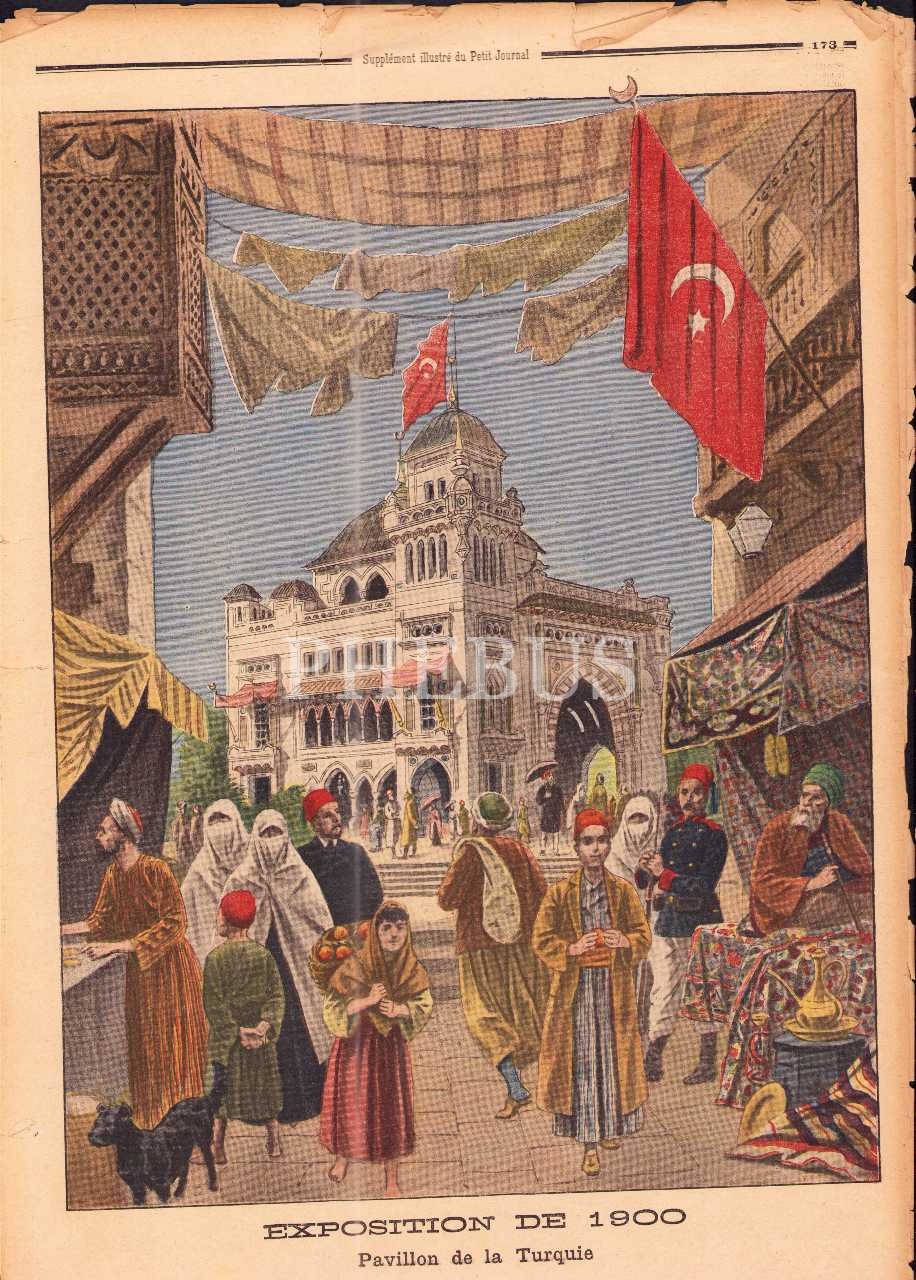 Türkiye´de bir çarşıya dair renkli gravürüyle Fransızca Le Petit Journal dergisi eki, 3 Haziran 1900, 30x43 cm