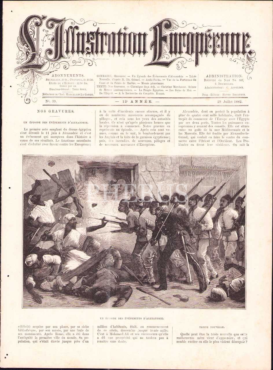 Mısır İskenderiye olayları ve Kahire Kalesi görünümüne dair gravürleriyle Fransızca L´Illustration Europeenne dergisi, 29 Temmuz 1882, 26x35 cm