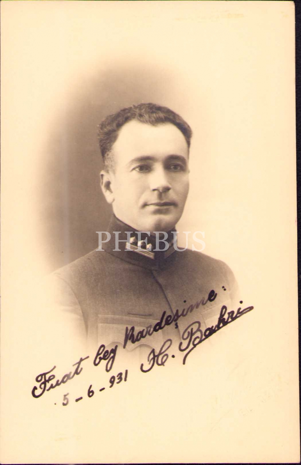 Bir subayın 1931 tarihli hatıra fotoğrafı, Foto H. Vehbi-Elaziz [Elazığ] soğuk damgalı