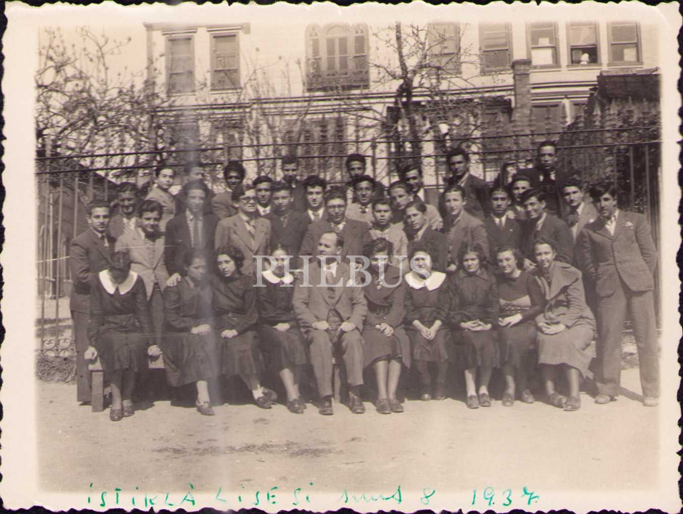 Eğitim tarihi: İstiklâl Lisesi´nde 1937 tarihli toplu hatıra fotoğrafı, 8x11 cm