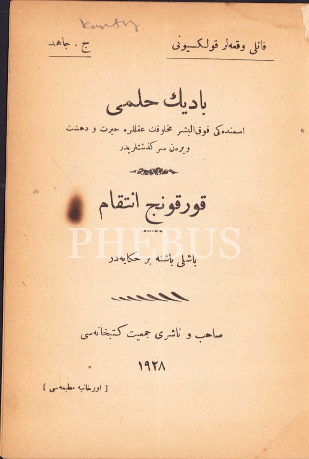 BADİK HİLMİ´nin Sergüzeştlerinden KORKUNÇ İNTİKAM, C. Cahid, Orhaniye Matbaası, 1928, 16 s., 13x19 cm
