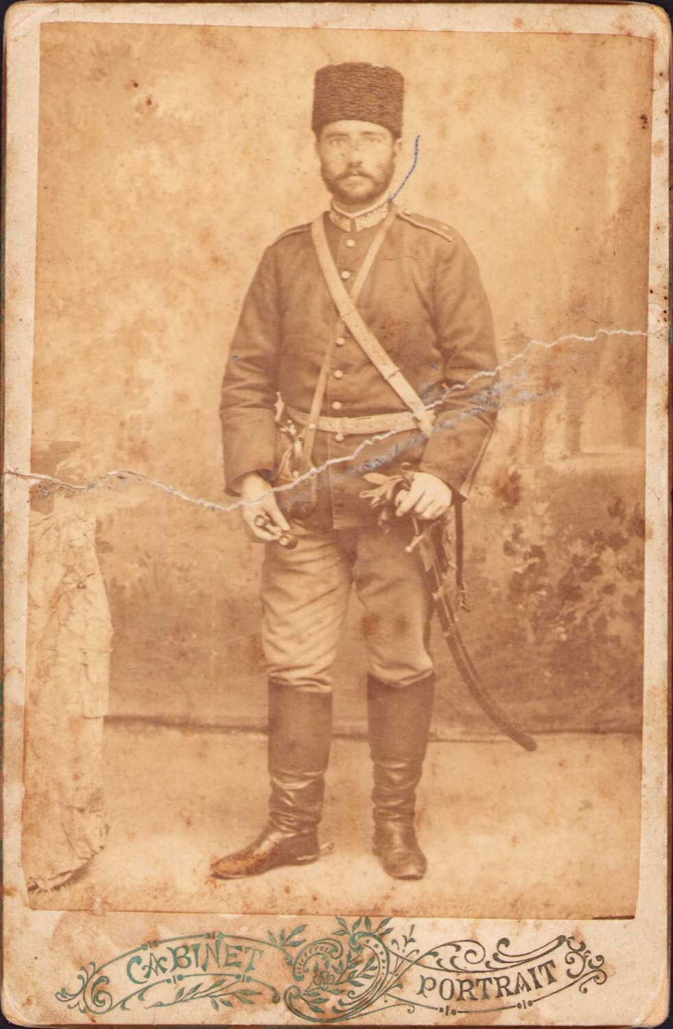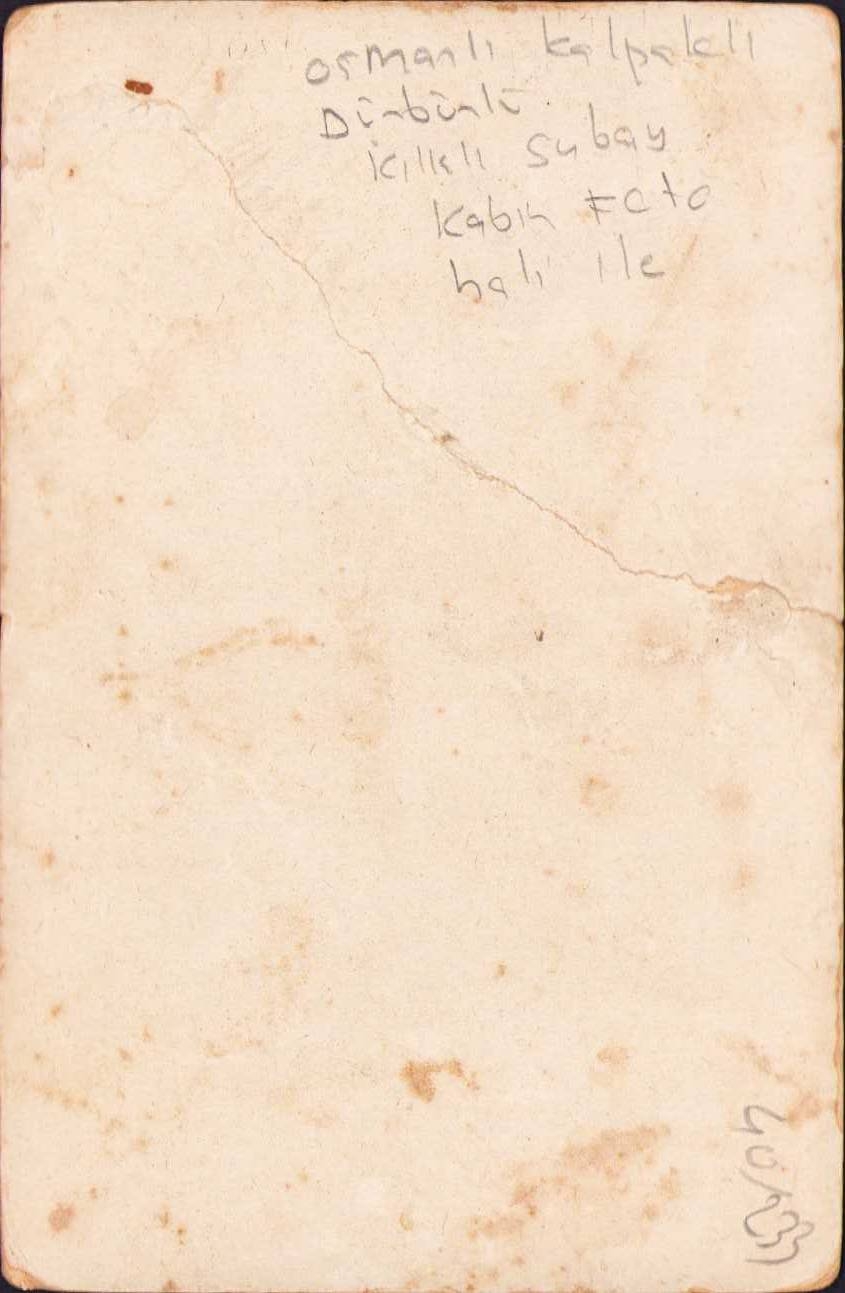 Osmanlı kalpaklı, dürbünlü kılıçlı subay, kabin foto, ortadan tamirli, haliyle