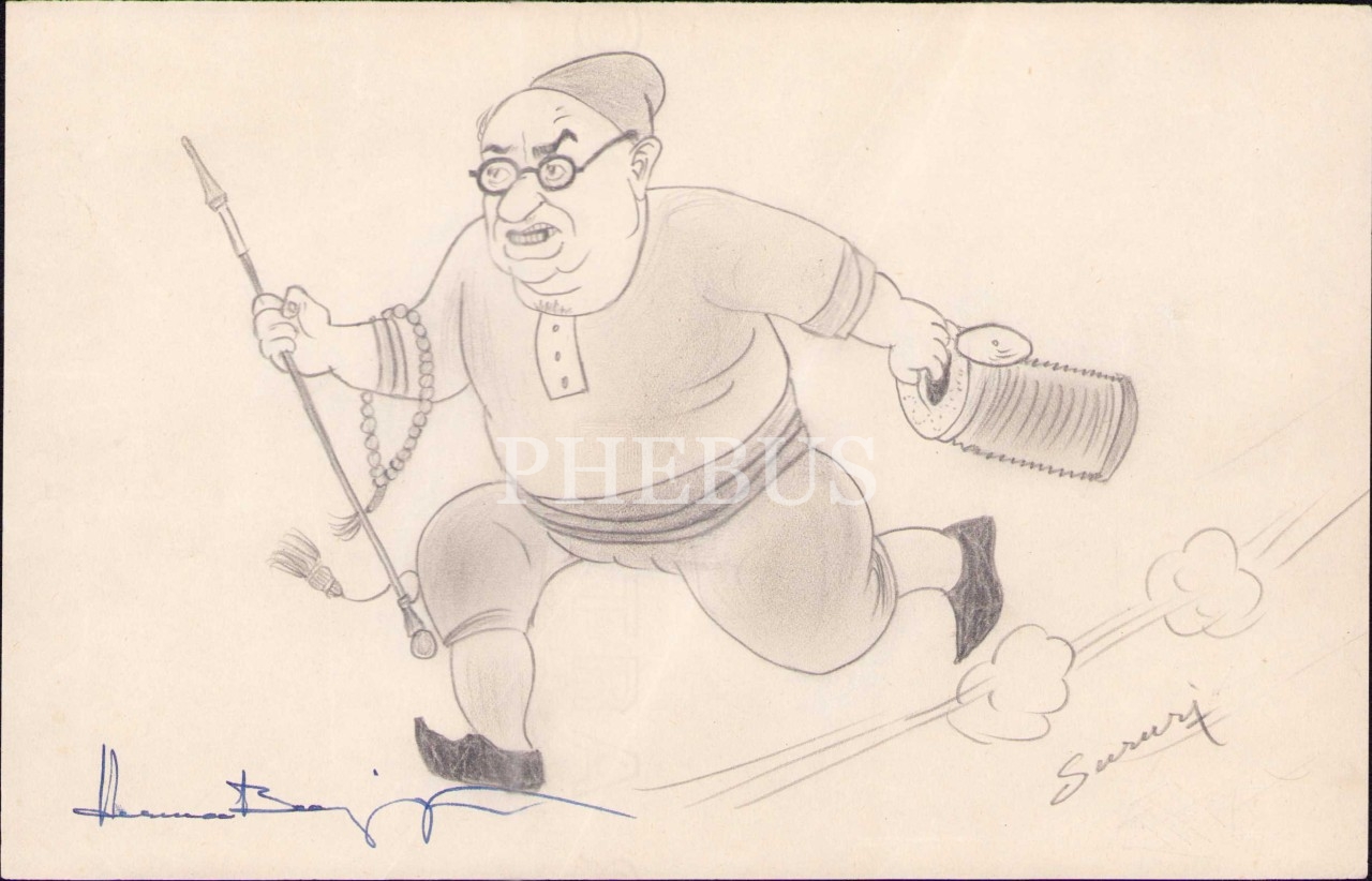 Süruri imzalı Celal Bayar karikatürü, 14x22 cm