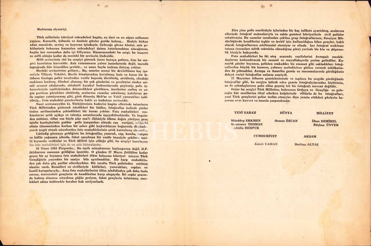 "Hürriyet Mücadelesinde 8 Objektif" fotoğraf sergisi broşürü, 26x39 cm