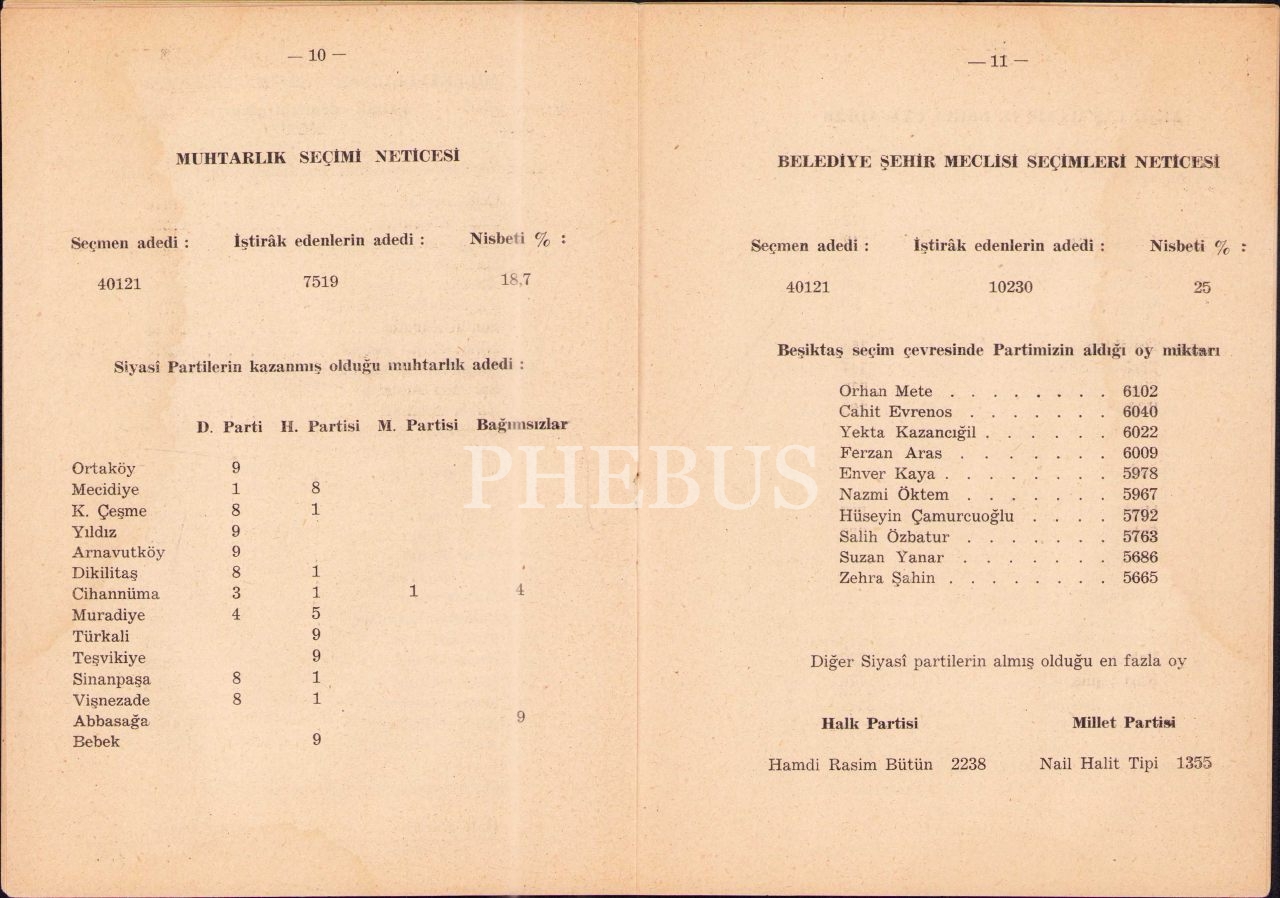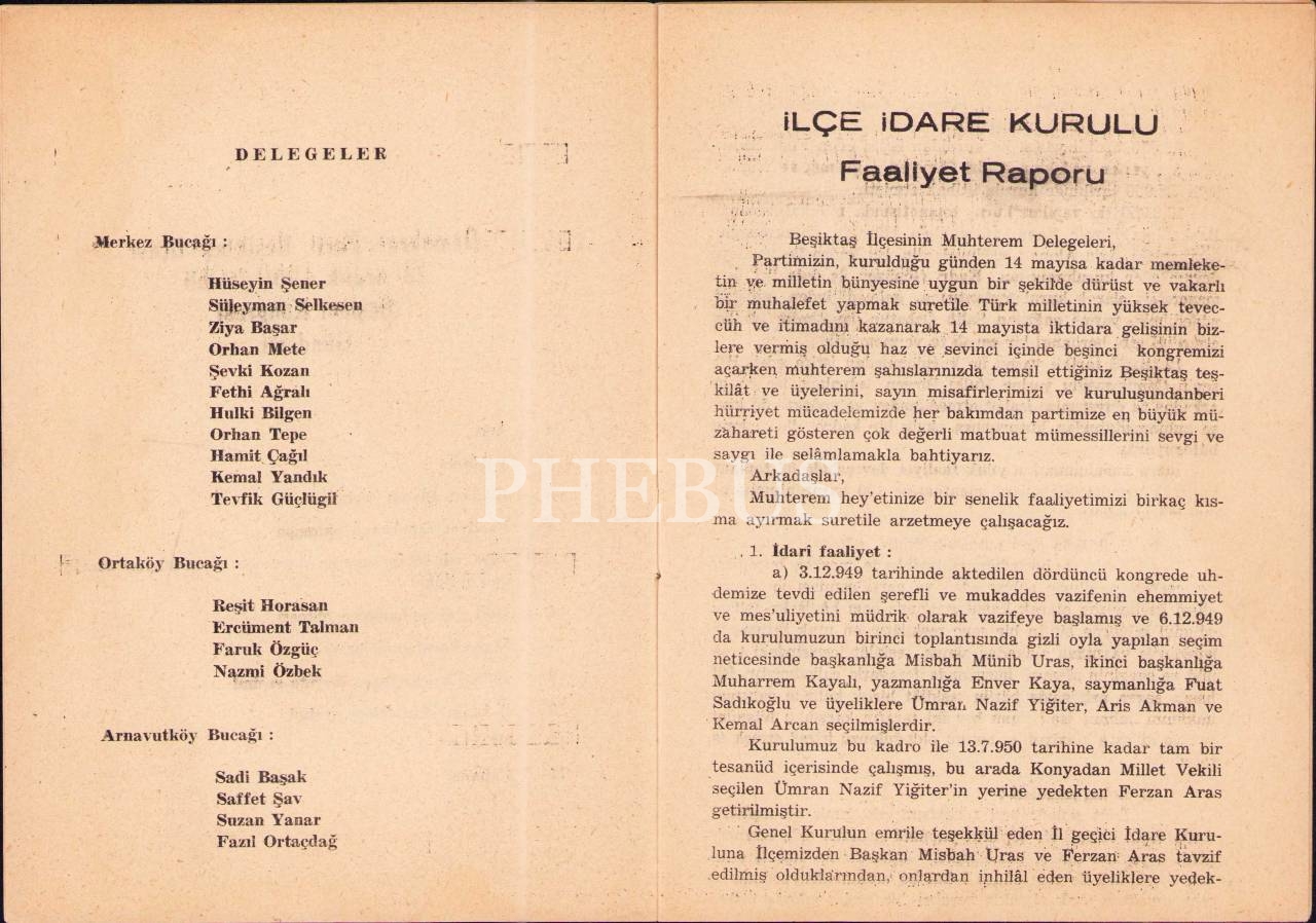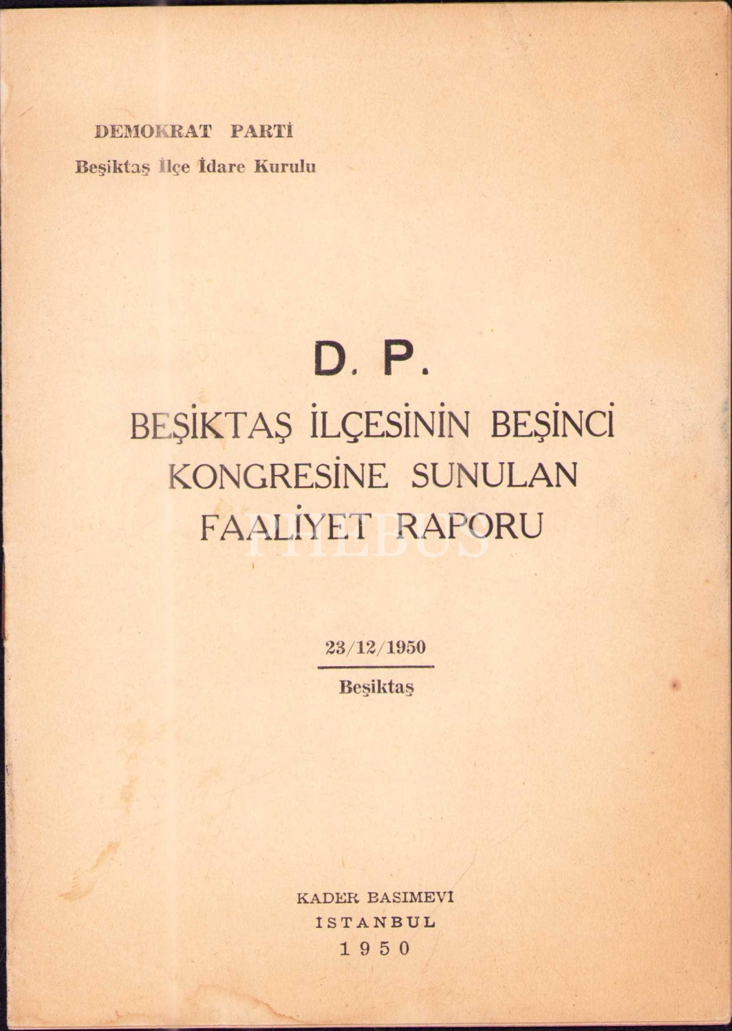 Demokrat Parti´nin Beşiktaş İlçesi 5. Kongresine Sunulan Faaliyet Raporu, 1950 tarihli, 16 sayfa, 14x19 cm