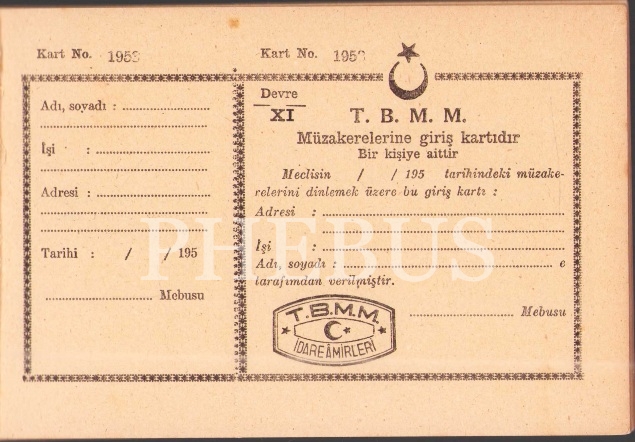T.B.M.M. Duhuliye (T.B.M.M. Müzakerelerine giriş kartları), 34 sayfa, 11x18 cm
