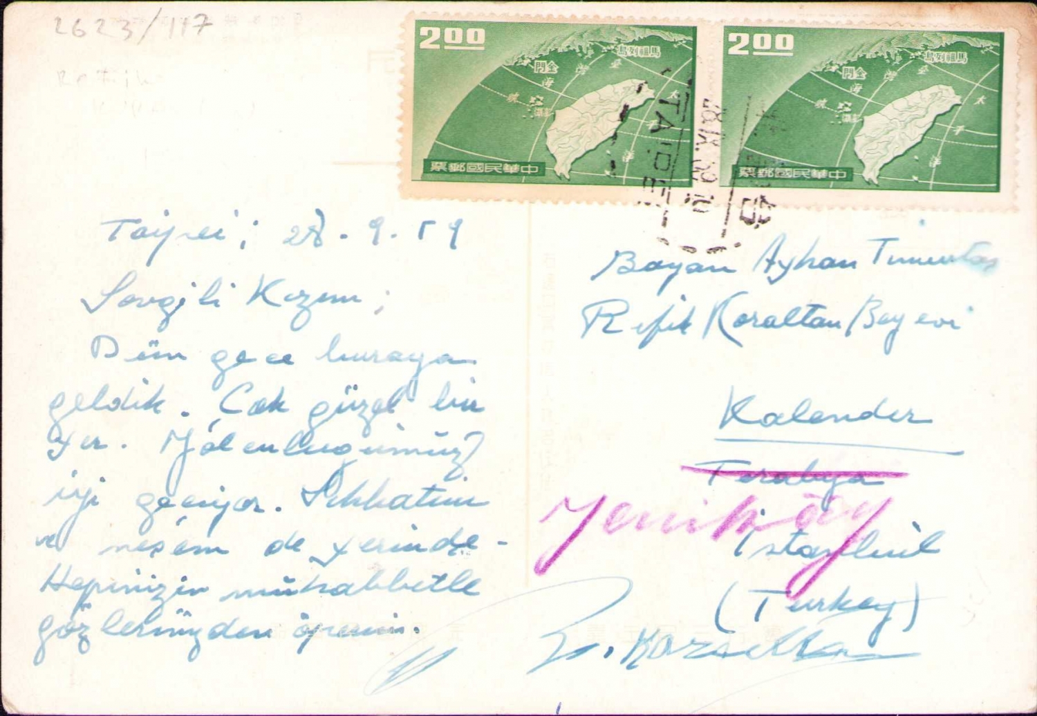 Demokrat Parti Meclis Başkanı Refik Koraltan´dan kızına yazılmış imzalı kartpostal, 11x15 cm