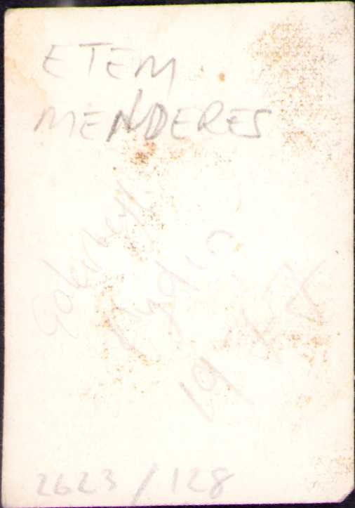 Ethem Menderes´in vesikalık fotoğrafı, arkasında "Çakırbeyli Aydın,1977" notu ile, 4x6 cm