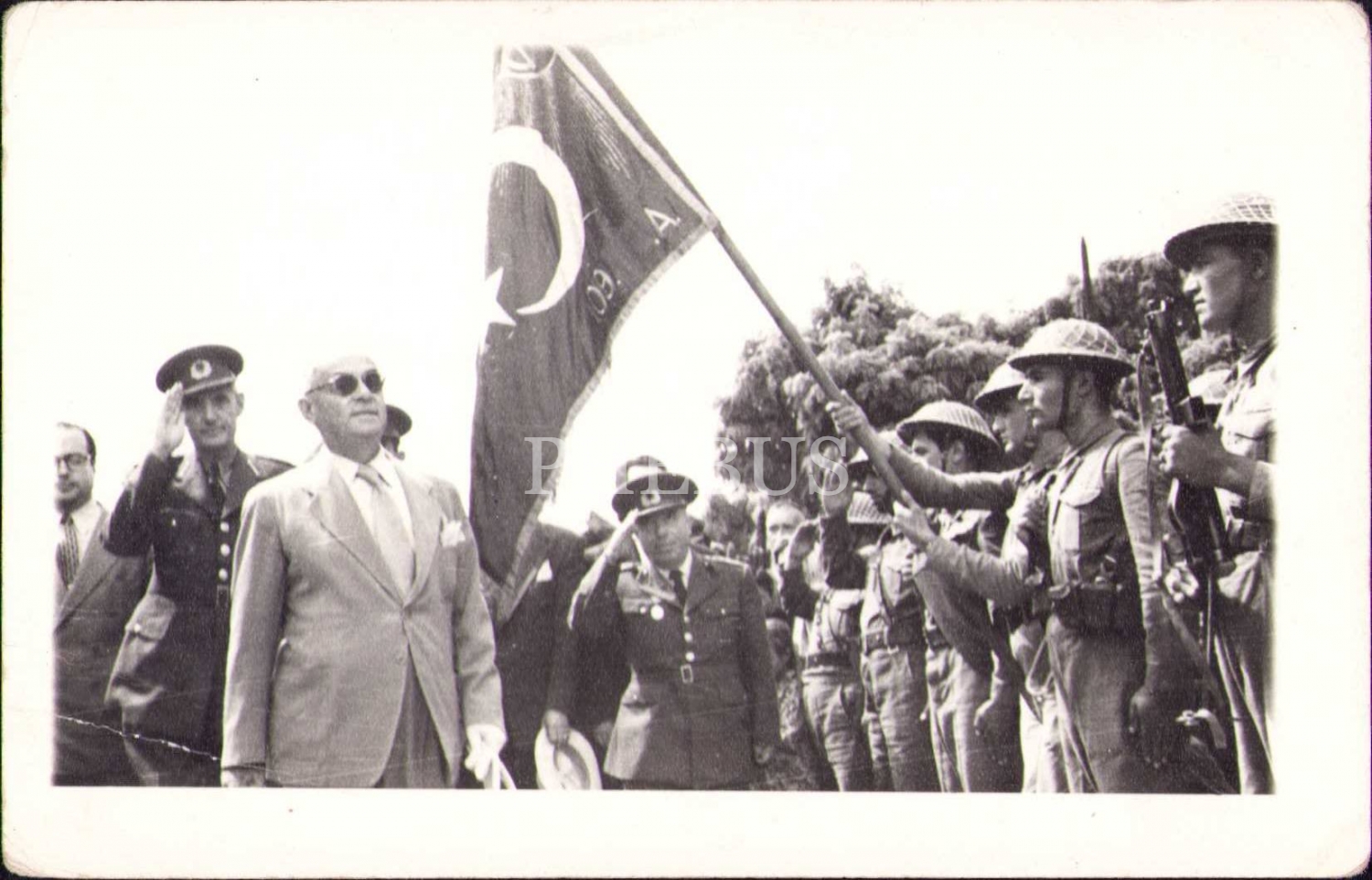 Celal Bayar´ın protokol yürüyüşü esnasında çekilen bir fotoğrafı, 7x13 cm