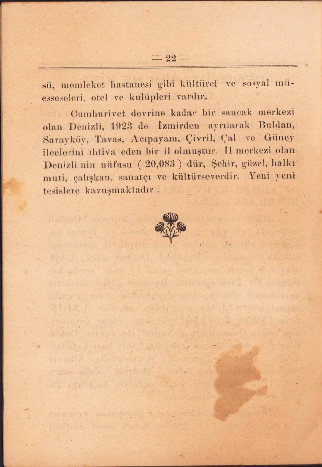 Denizli, 1949 İzmir Fuarı kitapçık, 22 sayfa