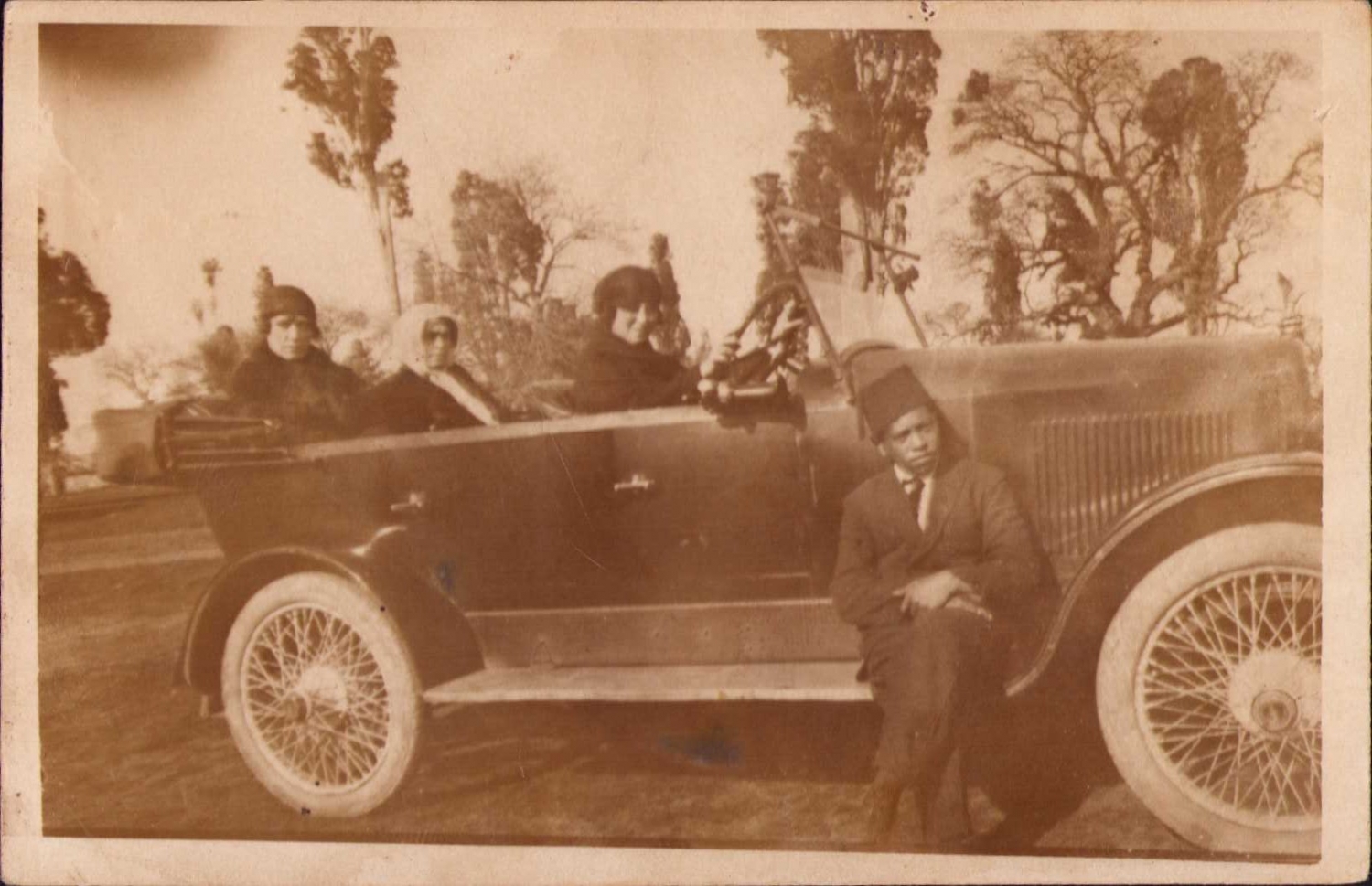 Osmanlı araba içinde kadın şoför ve arkadaşları arabada